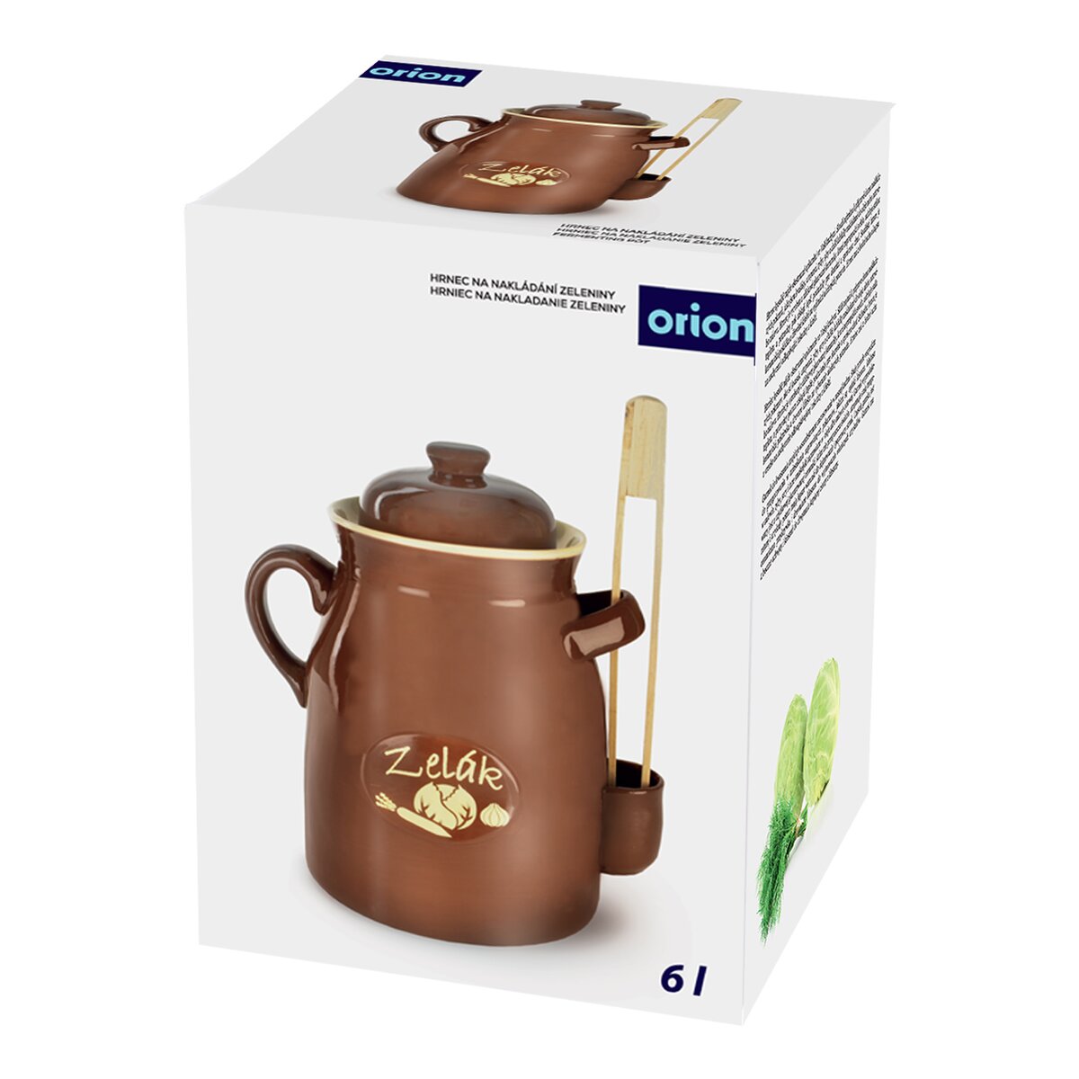 Kód produktu 111685Hrniec kyseláč nájde všestranné uplatnenie vo Vašej kuchyni. Slúži najmä na prípravu doma nakladaných pokrmov, ako sú kvašaky, utopenci, ryby, syry a ďalšie lahôdky nakladané do oleja alebo octového nálevu. Hrniec je vyrobený z úžitkovej glazovanej keramiky, ktorá neprepúšťa svetlo, udržuje stálu teplotu a potraviny potom získajú lepšie podmienky pre dozretie a správnu chuť. Súčasťou hrnca je keramická pokrievka a drevené kliešte na vyberanie uložených potravín. Hrniec má 2 bočné ucha a vrecko na zachytenie odkvapkávajúcej tekutiny z klieští. Navyše má žliabok, do ktorého nalejete vodu na zabezpečenie správneho procesu kvasenia. Rozmery: objem 6 l, pr. 20,5 cm, v 32 cm.