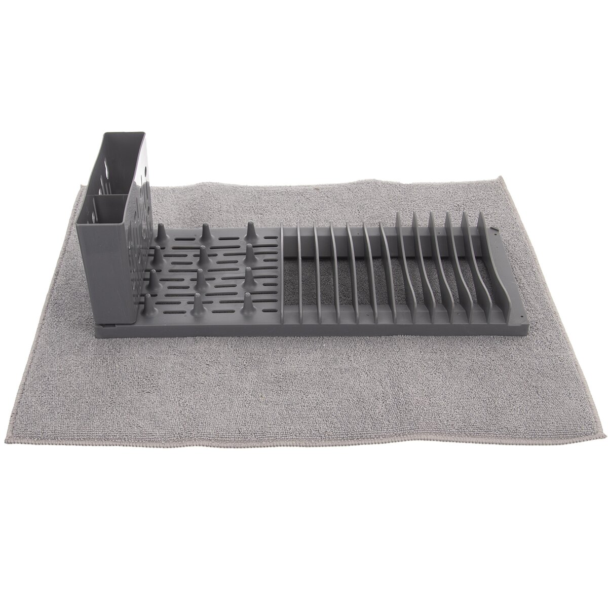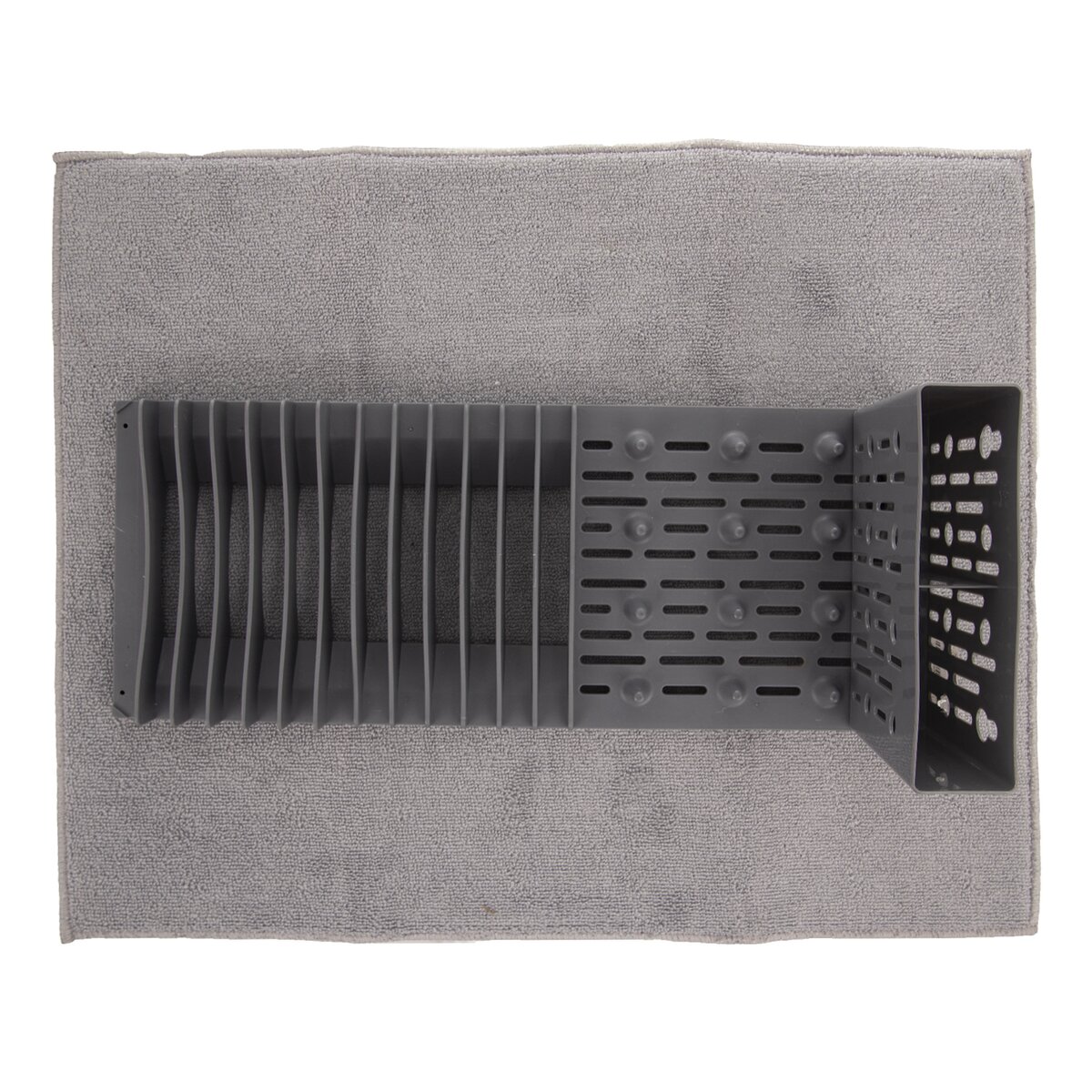 Kód produktu 150692Plastový odkvapkávač na riad s rozmermi 40×16×13 cm s veľmi savou podložkou s rozmermi 50×40 cm z mikrovlákna.