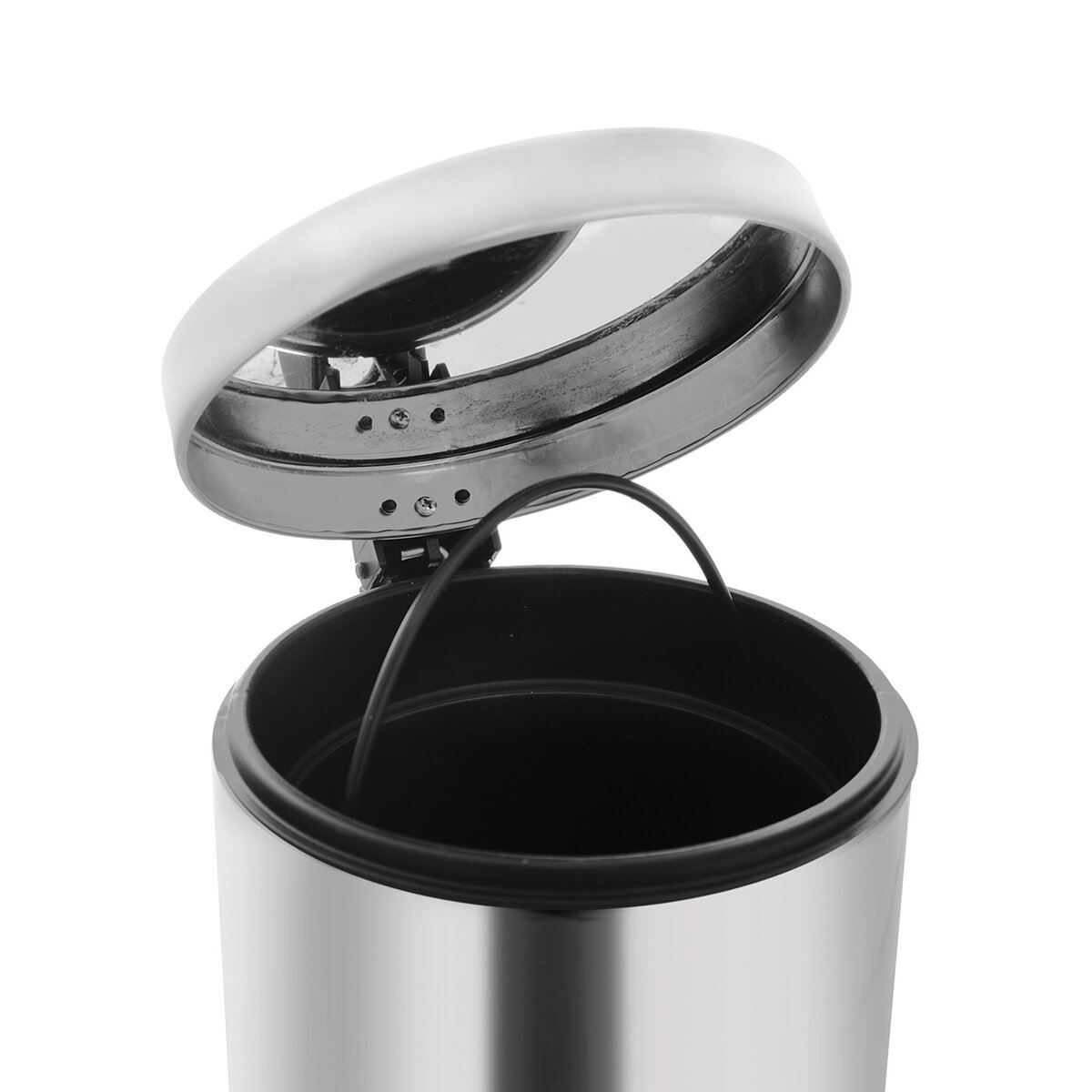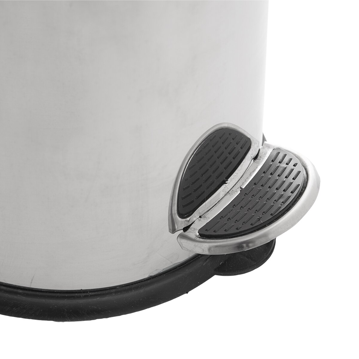 Kód produktu 731713Nerezový kôš na odpadky s objemom 9,5 l s pedálovým otváraním a vnútornou čiernou plastovou nádobou s držadlom.