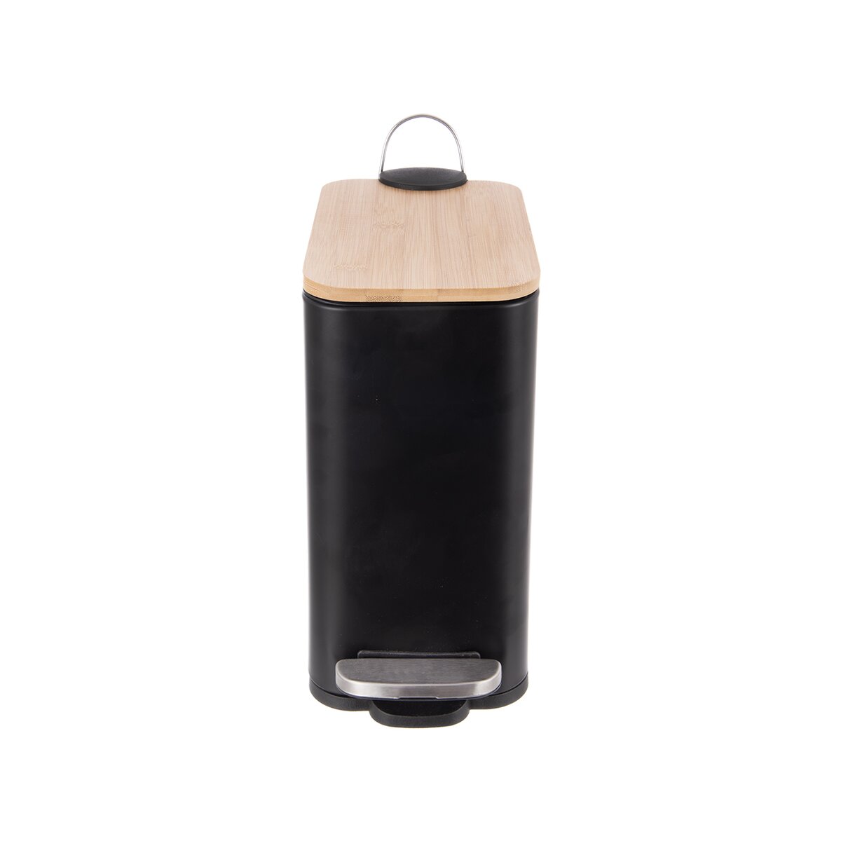 Kód produktu 731729Odpadkový kôš moderného vzhľadu s pedálovým otváraním, vyberateľným plastovým košom a uchom na ľahké prenášanie. Zatváranie má tichý a mäkký dojazd. Materiál: bambus (veko), plast PP (vnútorná vložka), nerezová oceľ (telo + pedál). Rozmery: 30x14x29 cm, o. 5 l.
