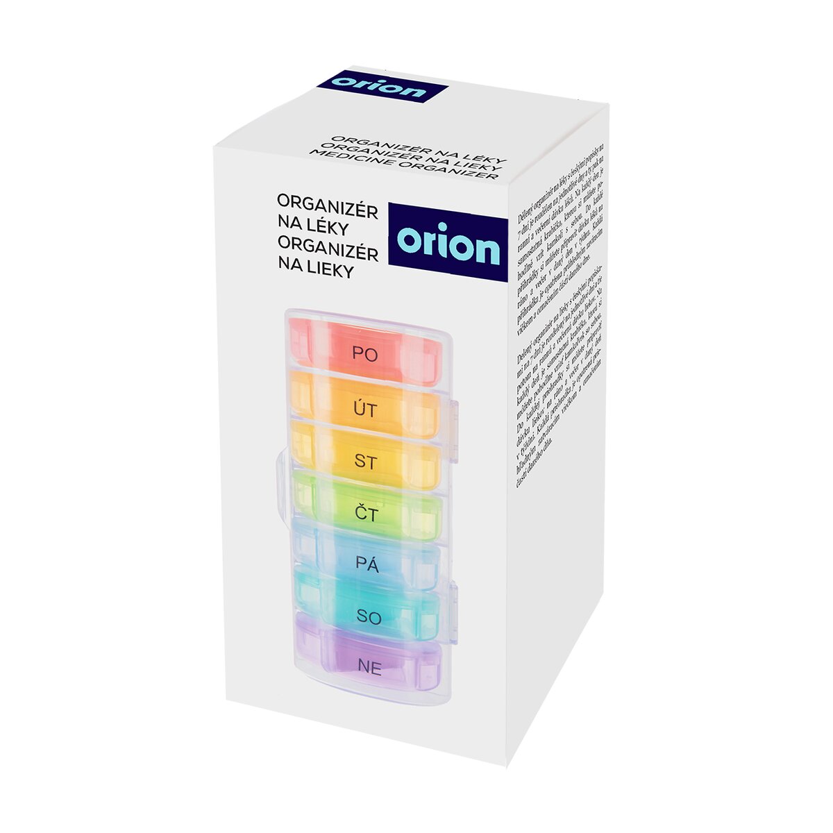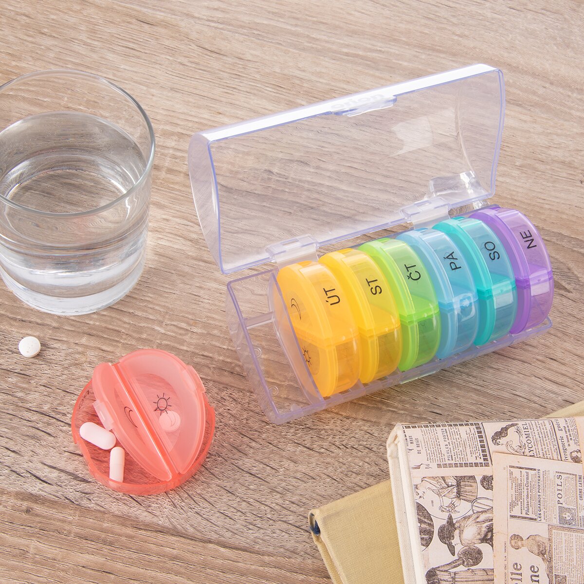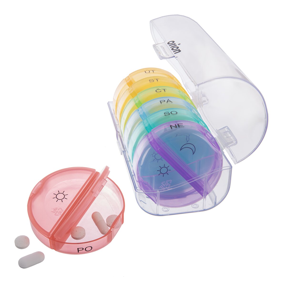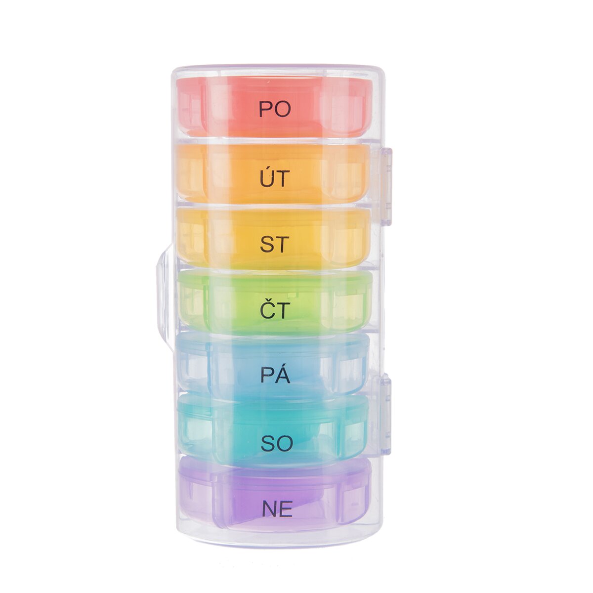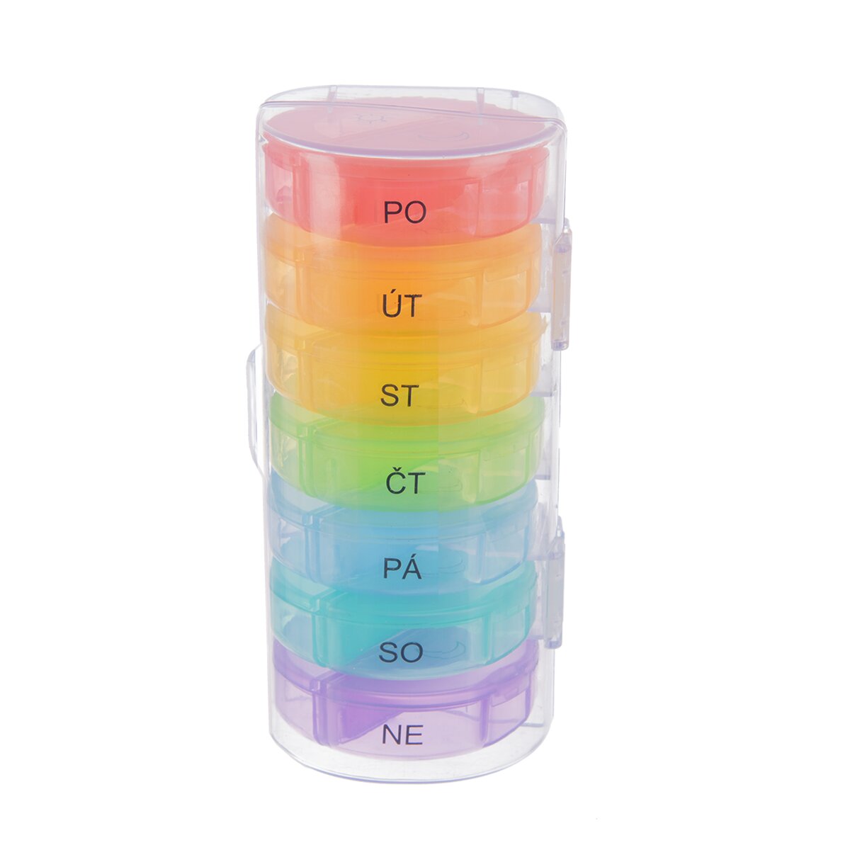 Kód produktu 811268Delený organizér na lieky s CZ popiskami na 7 dní je rozdelený na jednotlivé dni a tie potom na rannú a večernú dávku liekov. Na každý deň je samostatná krabička, ktorú si môžete pohodlne vziať kamkoľvek so sebou. Do každej priehradky si môžete pripraviť dávku liekov na ráno a večer v daný deň v týždni. Každá priehradka je opatrená priehľadným zatváracím viečkom a označením častí daného dňa. Materiál: plast PP a ABS (obal). Rozmery: organizér 14x6,5x6,5 cm, jednotlivá krabička na každý deň pr. 6 cm, v. 1,7 cm, jednotlivá časť 5,7x2,5x1,5 cm.