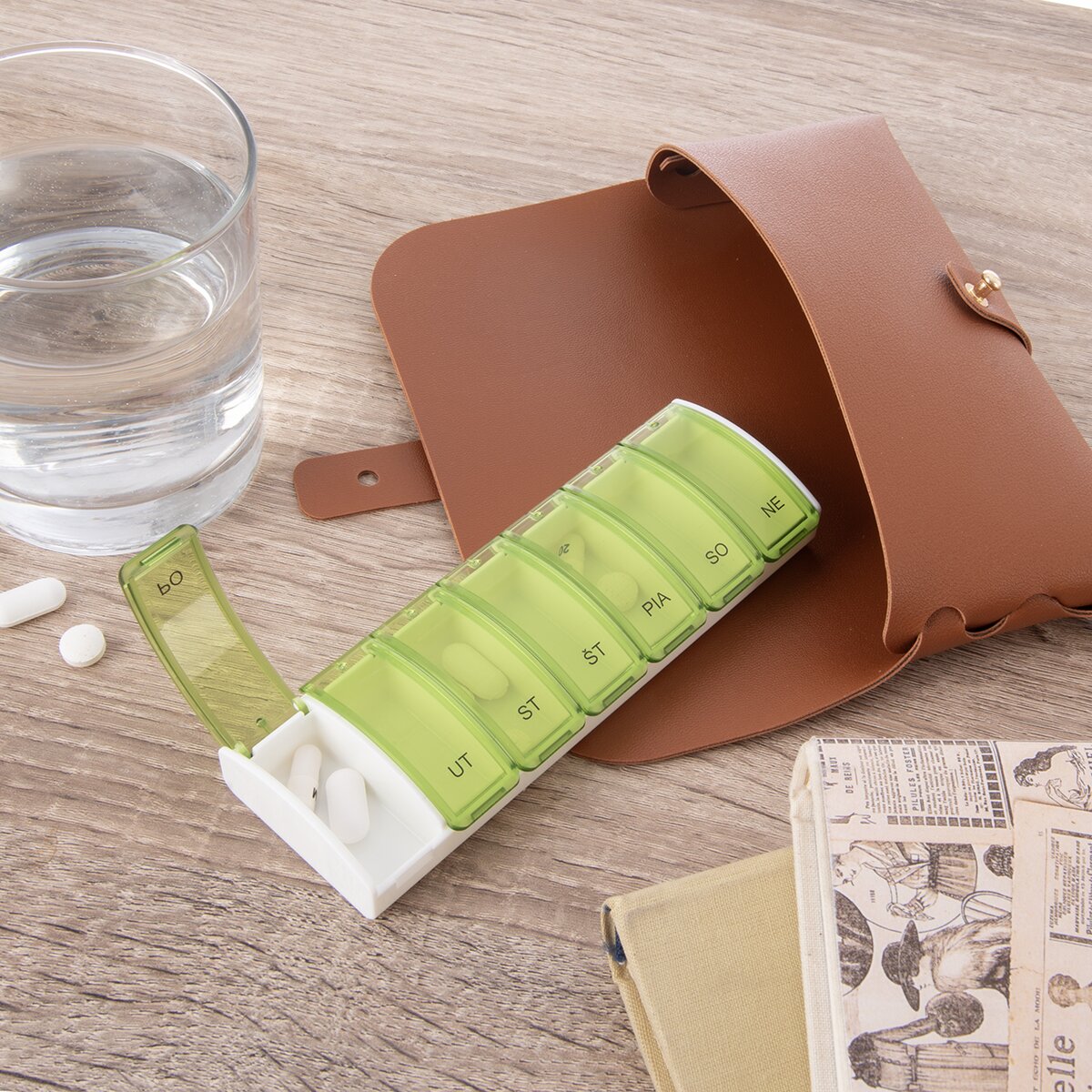 Kód produktu 811267Plastový organizér na uloženie liekov na celý týždeň má zatváracie transparentné viečka a prehľadný popis dní. Je rozdelený na priehradky na lieky od pondelka do nedele. Je uložený v puzdre, takže sa hodí aj na dovolenku či dlhšiu pracovnú cestu.