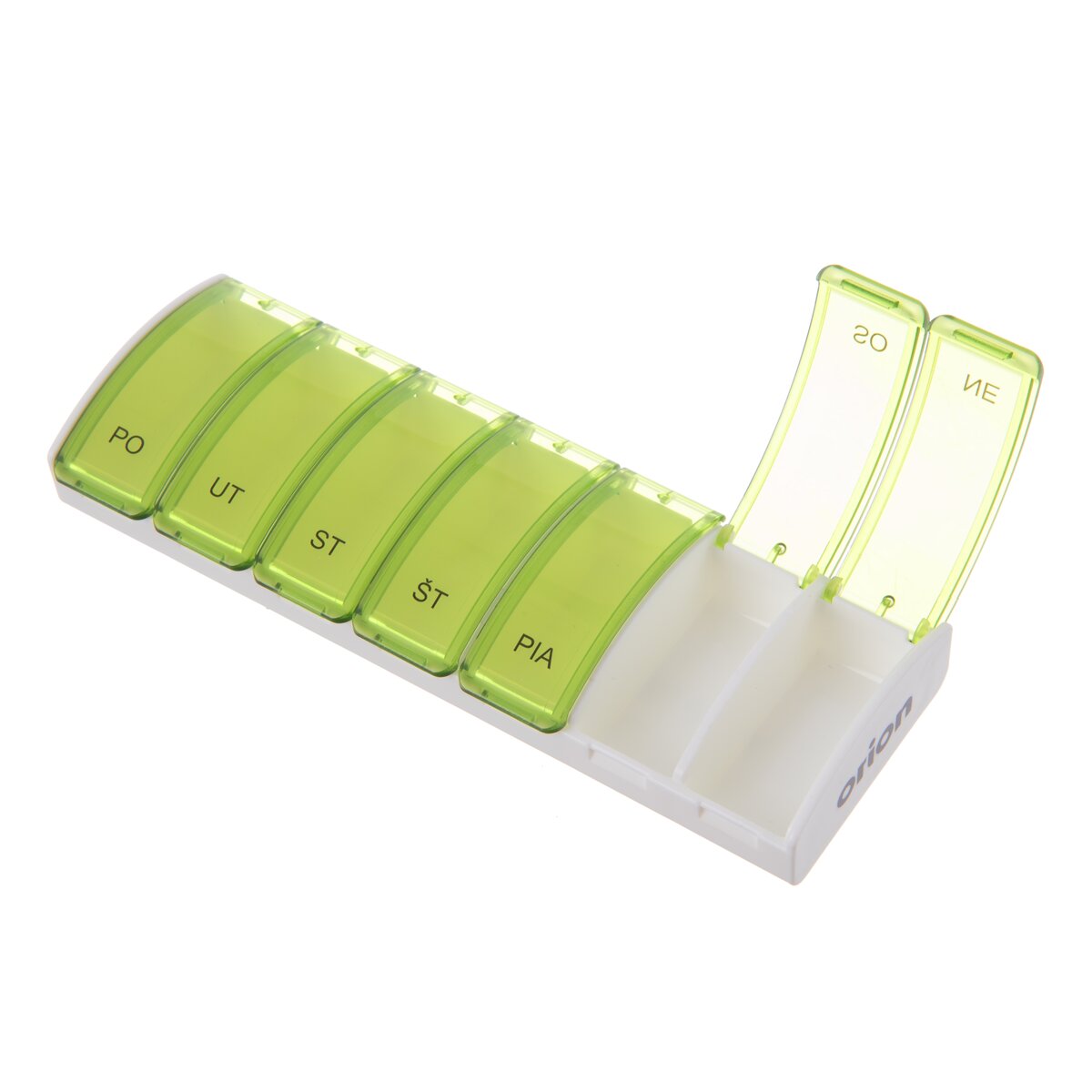 Každá priehradka je opatrená priehľadným zatváracím viečkom s označením dňa.