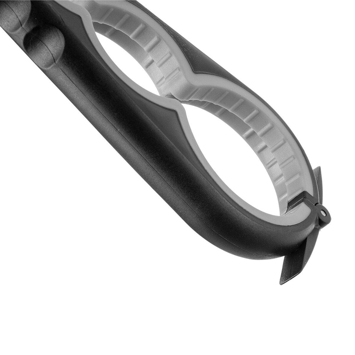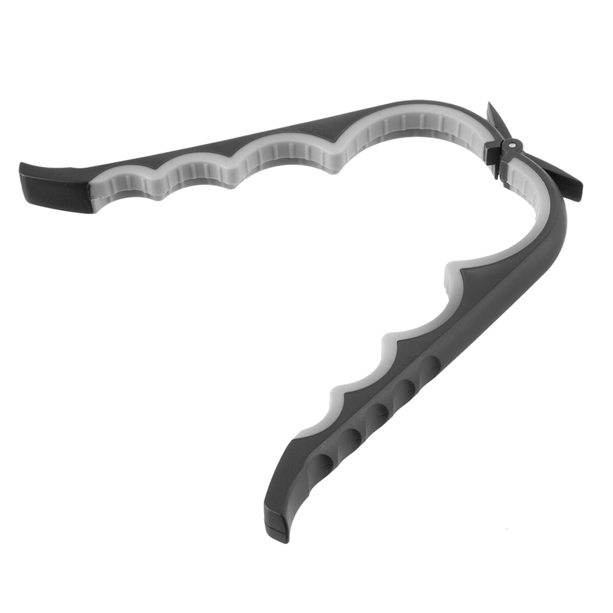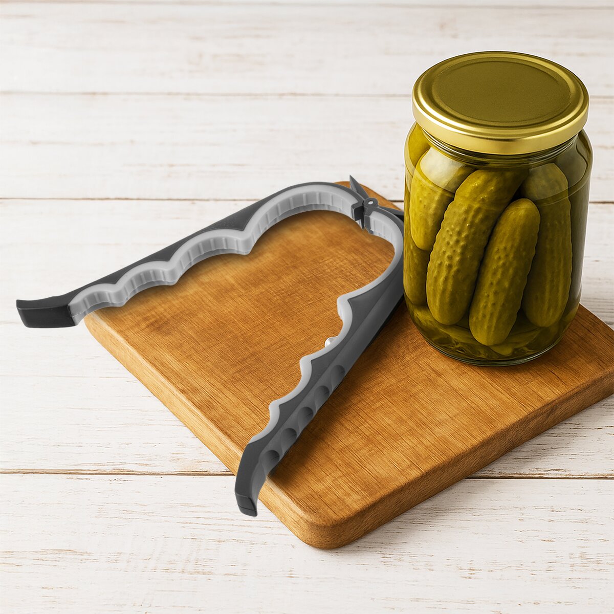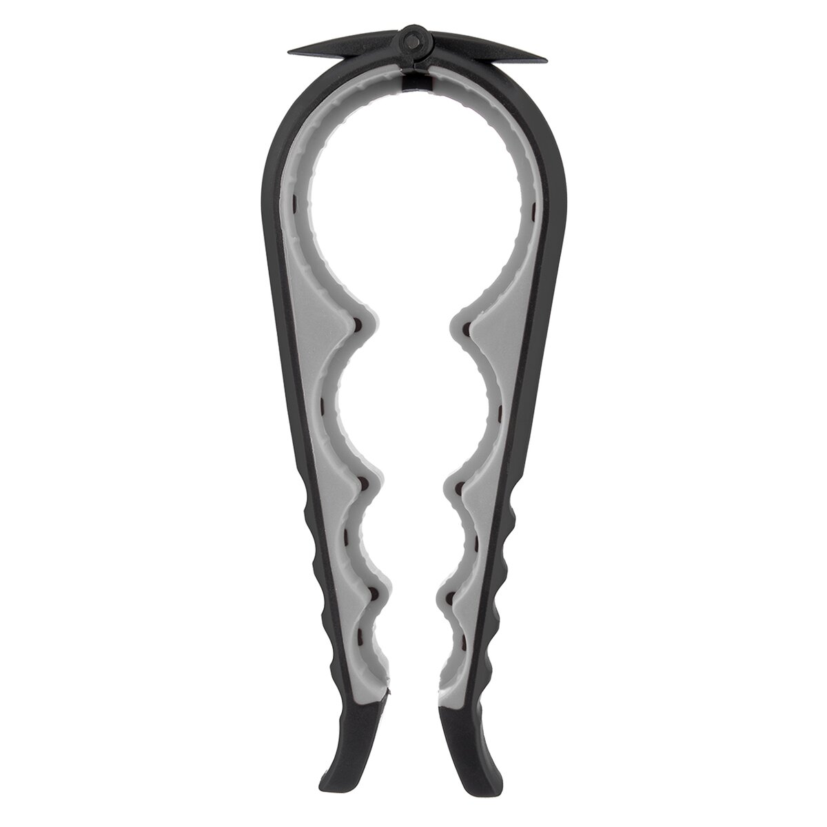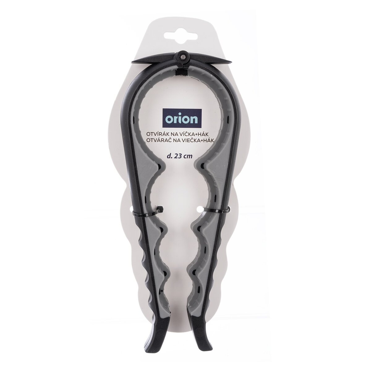 Kód produktu 140910Univerzálny otvárač na niekoľko typov a rozmerov viečok od PET fľaše až po niekoľko rozmerov viečok. Otváranie kečupov, omáčok, zaváranín a nápojov bude oveľa jednoduchšie. Súčasťou otvárača je hák na uvoľnenie viečok pre lepšie otvorenie. Materiál: plast PP a TPE. Rozmery: d. 23 cm, š. 9 cm.