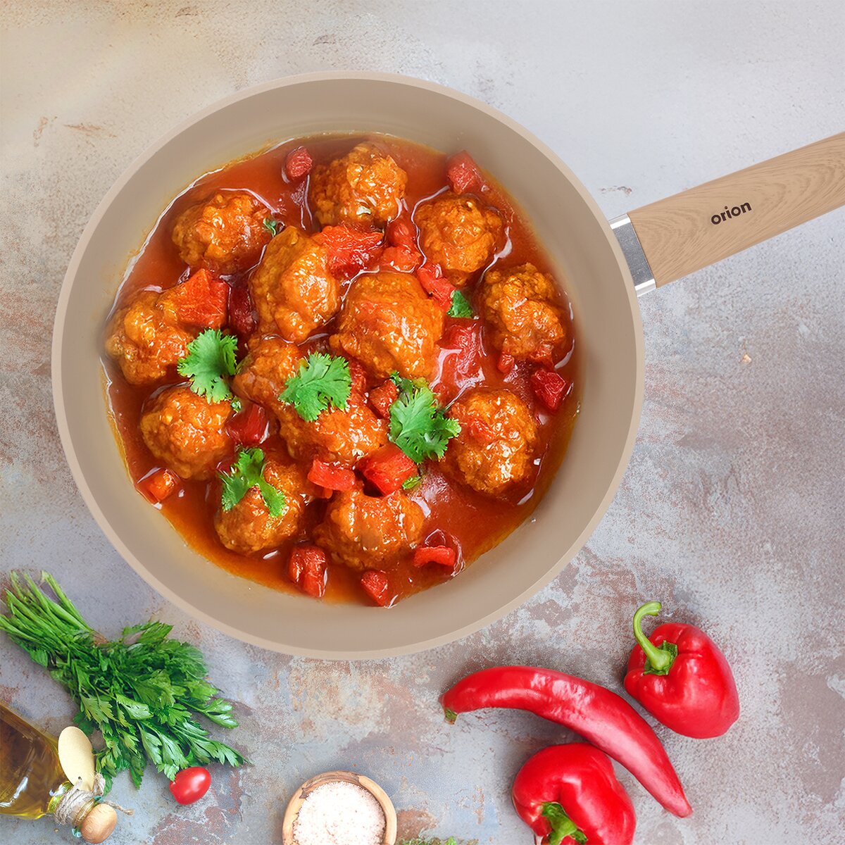 Kód produktu 113240Panvica z kolekcie ECRINA s kvalitným 2-vrstvovým nepriľnavým keramickým povrchom ILAG XERADUR predstavuje moderné a zdravé riešenie na každodenné varenie. Vnútorný nepriľnavý keramický povrch v dvoch vrstvách zaisťuje komfortnú a rýchlu prípravu pokrmov bez pripaľovania, bez straty chuti pripravovaných surovín, a zároveň umožňuje veľmi ľahkú údržbu. Vonkajšia strana je vybavená modernou, odolnou organosilikonovou povrchovou úpravou, ktorá zvyšuje odolnosť pred poškodením a prehriatím a navyše uľahčuje čistenie. Nepriľnavý keramický povrch sa vyznačuje vysokou tepelnou odolnosťou a skvelou tepelnou vodivosťou, takže sa panvica rýchlo a rovnomerne zahreje po celej ploche. Vďaka tomu je varenie efektívne, úsporné a umožňuje prípravu pokrmov s minimálnym množstvom tuku, čo podporuje zdravší životný štýl bez straty chuti. Panvica je navyše úplne bezpečná pre zdravie aj životné prostredie - neobsahuje PTFE, PFOA, PFOS ani PFAS, a pri používaní tak nedochádza k uvoľňovaniu škodlivých látok. Na zachovanie dlhej životnosti povrchu sa odporúča používať drevené alebo silikónové kuchynské náčinie, ktoré keramiku nepoškriabe. Panvica má elegantný vzhľad a je ideálna na každodenné varenie – skvele sa hodia na restovanie zeleniny, prípravu mäsa, ale aj na jemné pokrmy, ako sú omelety. Vďaka odolnosti voči vysokým teplotám ich možno použiť aj na prudké opekanie. Panvica je vhodná na všetky typy spotrebičov, vrátane indukcie, a vynikajú elegantným vzhľadom. Pri používaní je nutné postupné zahrievanie, pretože teplotný šok môže spôsobiť konkávnosť dna. Maximálna teplota zahriatia je 250 °C. Je vhodná do umývačky riadu. Nepoužívajte v rúre. K tejto panvici je možné použiť pokrievku rovnakého priemeru z našej ponuky. Materiál: vnútorný povrch: nepriľnavý keramický povrch ILAG XERADUR, vysoko kvalitná zliatina hliníka, nerezové indukčné dno, vonkajší povrch: organosilikonová povrchová úprava, rukoväť: bakelit. Rozmery: pr. 26 cm, d. 46 cm, v. 7 cm. Rozmery: pr. 26 cm, d. 46 cm, v. 7 cm.