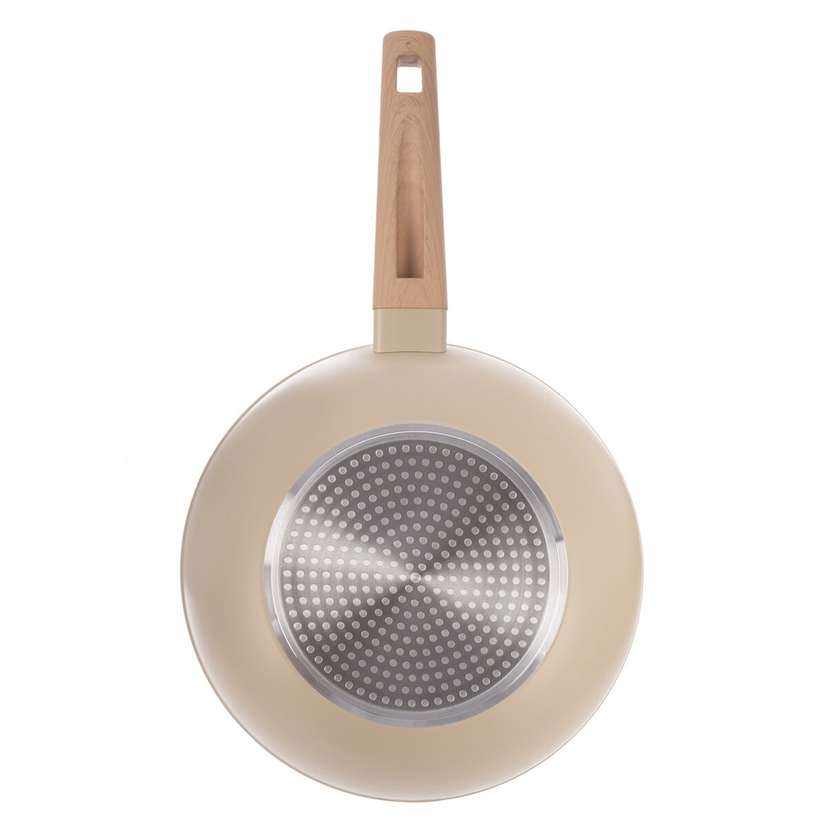 Kód produktu 113239Panvica Wok z kolekcie ECRINA s kvalitným 2-vrstvovým nepriľnavým keramickým povrchom ILAG XERADUR predstavuje moderné a zdravé riešenie na každodenné varenie. Vnútorný nepriľnavý keramický povrch v dvoch vrstvách zaisťuje komfortnú a rýchlu prípravu pokrmov bez pripaľovania, bez straty chuti pripravovaných surovín, a zároveň umožňuje veľmi ľahkú údržbu. Vonkajšia strana je vybavená modernou, odolnou organosilikonovou povrchovou úpravou, ktorá zvyšuje odolnosť pred poškodením a prehriatím a navyše uľahčuje čistenie. Nepriľnavý keramický povrch sa vyznačuje vysokou tepelnou odolnosťou a skvelou tepelnou vodivosťou, takže sa panvica rýchlo a rovnomerne zahreje po celej ploche. Vďaka tomu je varenie efektívne, úsporné a umožňuje prípravu pokrmov s minimálnym množstvom tuku, čo podporuje zdravší životný štýl bez straty chuti. Panvica je navyše úplne bezpečná pre zdravie aj životné prostredie - neobsahuje PTFE, PFOA, PFOS ani PFAS, a pri používaní tak nedochádza k uvoľňovaniu škodlivých látok. Na zachovanie dlhej životnosti povrchu sa odporúča používať drevené alebo silikónové kuchynské náčinie, ktoré keramiku nepoškriabe. Panvica má elegantný vzhľad a je ideálna na každodenné varenie – skvele sa hodia na restovanie zeleniny, prípravu mäsa, ale aj na jemné pokrmy. Vďaka odolnosti voči vysokým teplotám ich možno použiť aj na prudké opekanie. Panvica je vhodná na všetky typy spotrebičov, vrátane indukcie, a vynikajú elegantným vzhľadom. Pri používaní je nutné postupné zahrievanie, pretože teplotný šok môže spôsobiť konkávnosť dna. Maximálna teplota zahriatia je 250 °C. Je vhodná do umývačky riadu. Nepoužívajte v rúre. K tejto panvici je možné použiť pokrievku rovnakého priemeru z našej ponuky. Materiál: vnútorný povrch: nepriľnavý keramický povrch ILAG XERADUR, vysoko kvalitná zliatina hliníka, nerezové indukčné dno, vonkajší povrch: organosilikonová povrchová úprava, rukoväť: bakelit. Rozmery: pr. 30 cm, d. 49 cm, v. 9 cm.