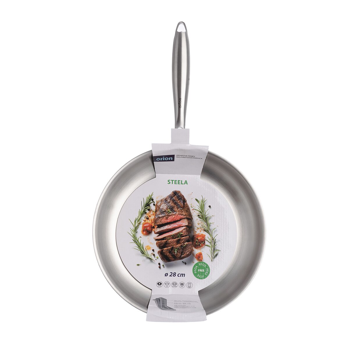 Kód produktu 113233Nerezová panvica predstavuje vďaka moderným technológiám a použitiu kvalitných materiálov výrobok vhodný pre každú modernú domácnosť a je ideálnou voľbou pre zdravé, diétne a ekonomické varenie. Zaručuje dlhú životnosť, odolnosť a maximálnu hygienu pri príprave aj uchovávaní pokrmov. 3-vrstvová kvalitná nerezová panvica umožňuje rýchle zahriatie, varenie, dusenie aj vyprážanie s minimálnym množstvom tuku, bez straty vitamínov a minerálov obsiahnutých v potravinách. Nahromadená energia efektívne odovzdáva teplo po celej ploche nádoby až do krajov, takže je možné tepelný zdroj vypnúť s predstihom, čo prináša rýchle a úsporné varenie s výraznou úsporou energie. Leštený vnútorný aj vonkajší povrch bráni usadzovaniu nečistôt a zaisťuje jednoduchú údržbu, pričom zachováva prirodzenú chuť a hmotnosť pripravovaných potravín. Panvica je PTFE free, PFOA free, PFOS free a PFAS free, čím garantuje zdravé varenie bez uvoľňovania škodlivých látok a šetrnosť k životnému prostrediu. Je vhodná pre všetky typy sporákov vrátane indukcie, použiteľná aj v rúre, je nutné ju zahrievať postupne. Teplotný šok môže spôsobiť konkávnosť dna. Maximálna teplota ohrevu 220 °C. S ergonomickou rukoväťou pre pohodlné uchopenie a manipuláciu, s možnosťou zavesenia. Pri varení môžete používať všetky typy kuchynského náradia, vrátane kovového, ale odporúčame najmä drevené a silikónové. Na túto panvicu sa hodí pokrievka rovnakého priemeru z našej ponuky. Materiál: nerezová oceľ 304, hliník, nerezová oceľ. Rozmery: vnútorné pr. 28 cm, d. 51 cm, v. 6,2 cm.