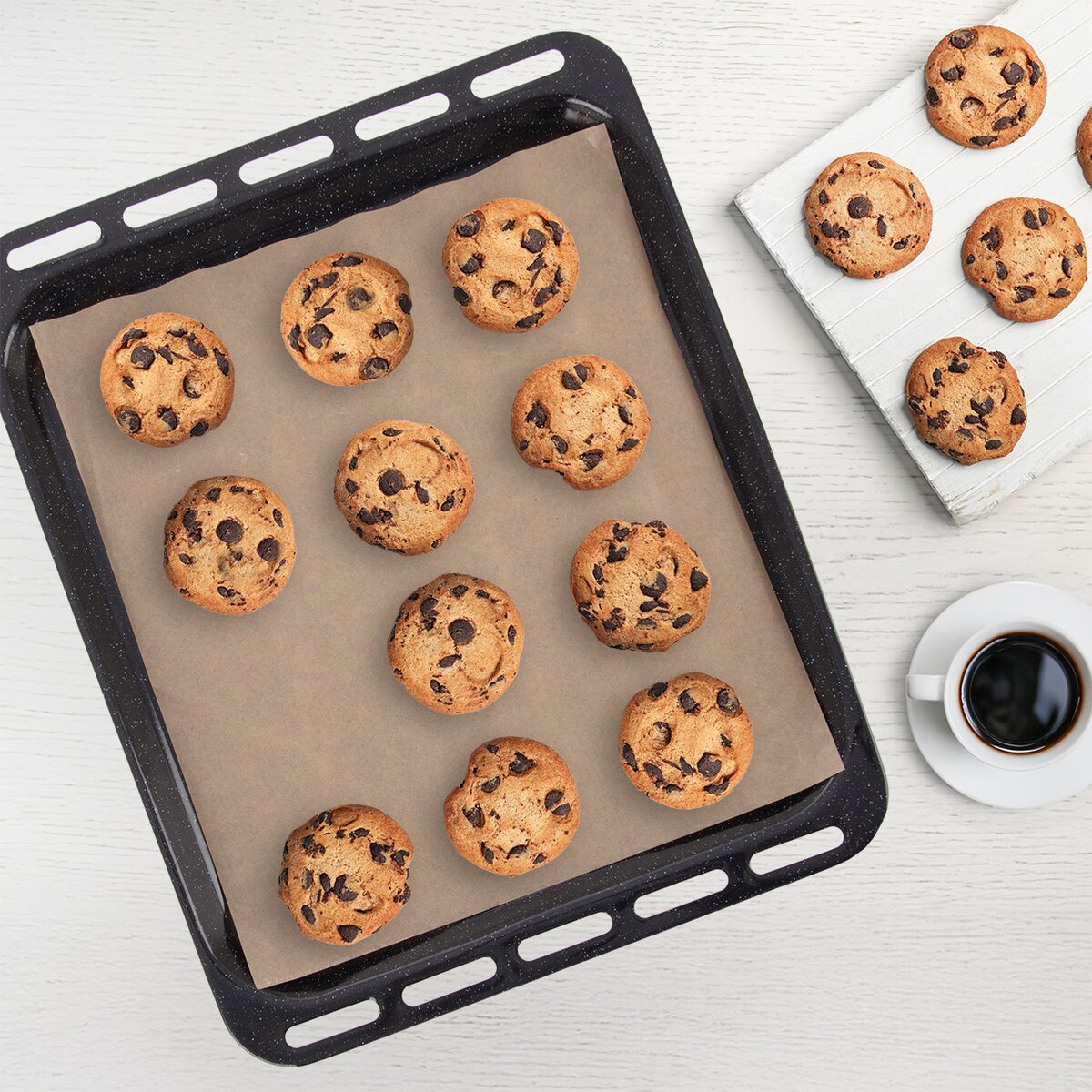 Viac informáciíKlasický papier na pečenie je praktická pomôcka na pečenie bez nutnosti vysypávania formy či plechu, navyše ich ochráni pred znečistením, zamastením. Po dopečení pokrmu stačí papier ľahko odňať z plechu a vyhodiť.
