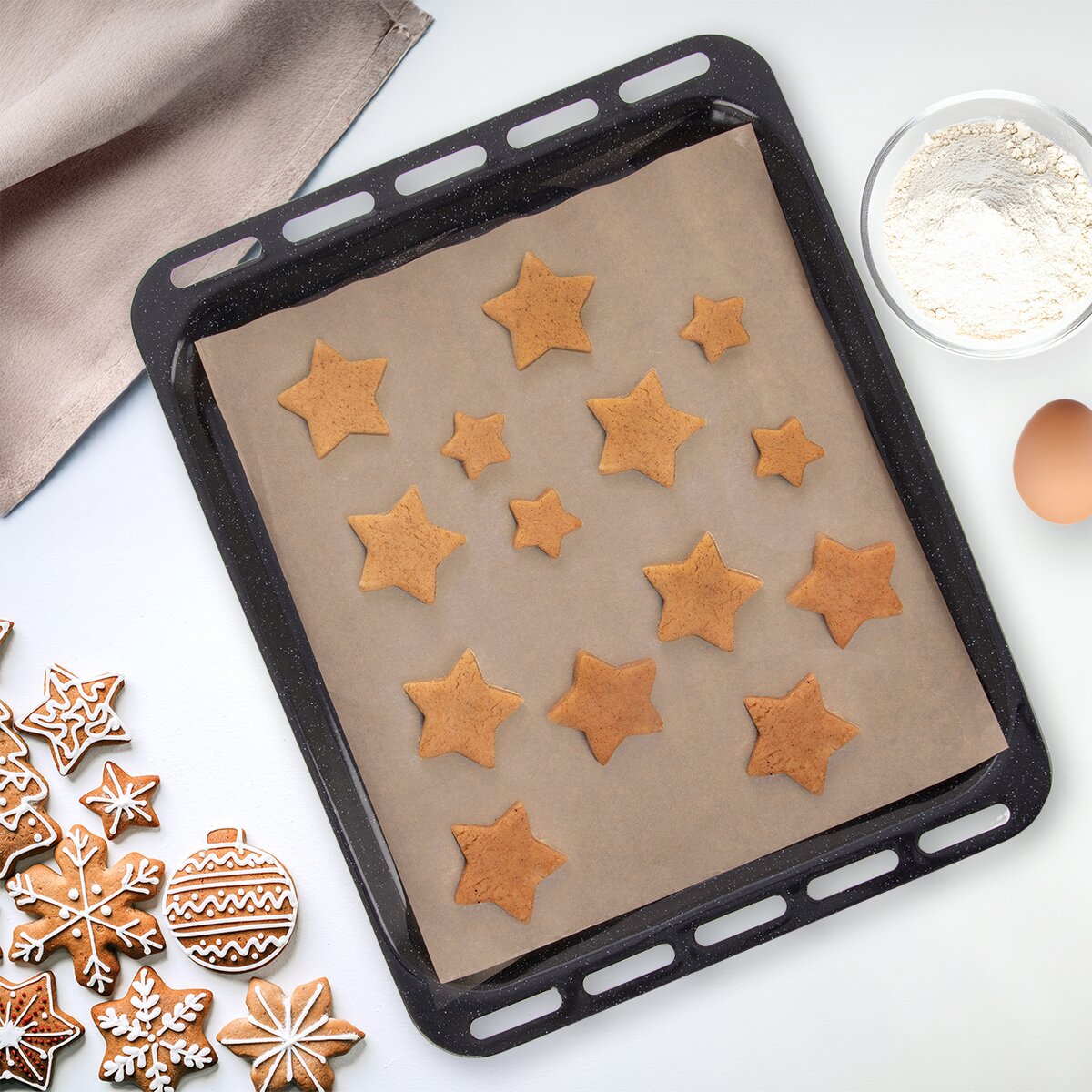 Viac informáciíKlasický papier na pečenie je praktická pomôcka na pečenie bez nutnosti vysypávania formy či plechu, navyše ich ochráni pred znečistením, zamastením. Po dopečení pokrmu stačí papier ľahko odňať z plechu a vyhodiť.