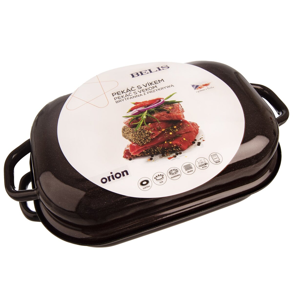 Kód produktu 127010Smaltovaný pekáč s poklopom a uchami od českého výrobcu, s celkovou dĺžkou 37 cm, vhodný na pečenie sladkých aj slaných dobrôt v rúre. Veko je možné použiť ako samostatnú nádobu.