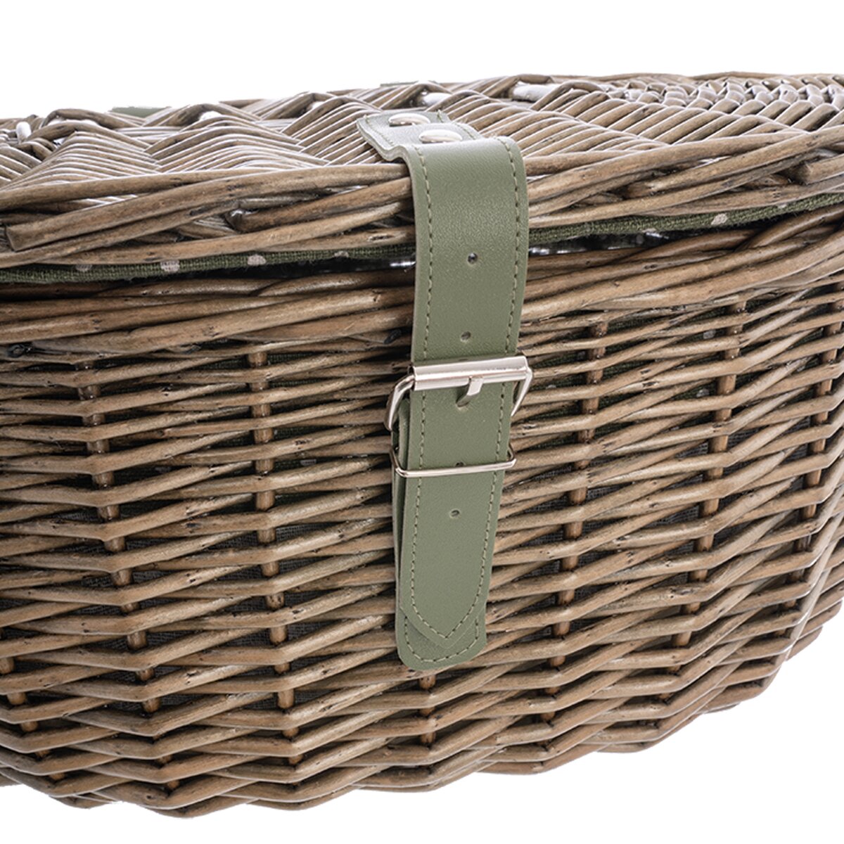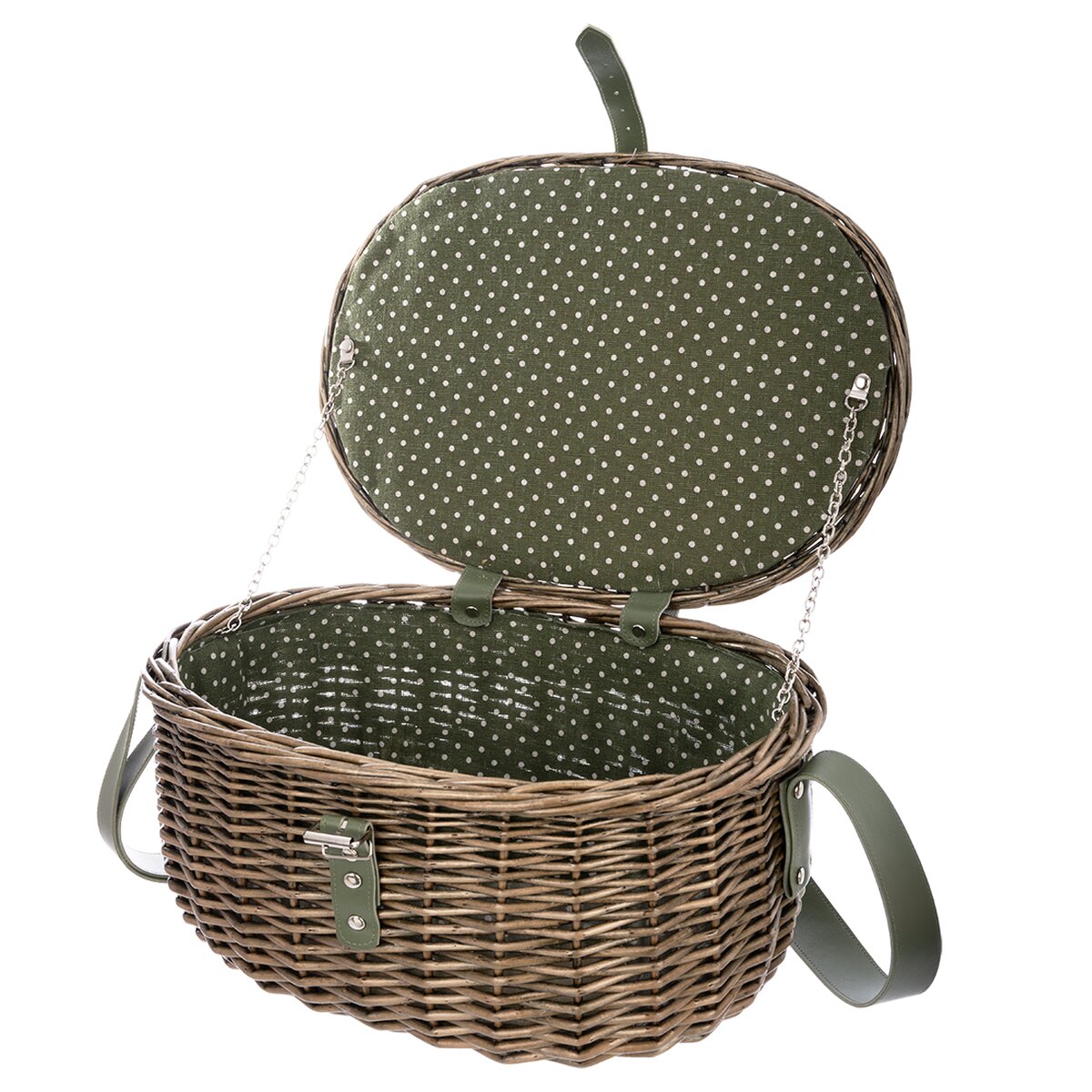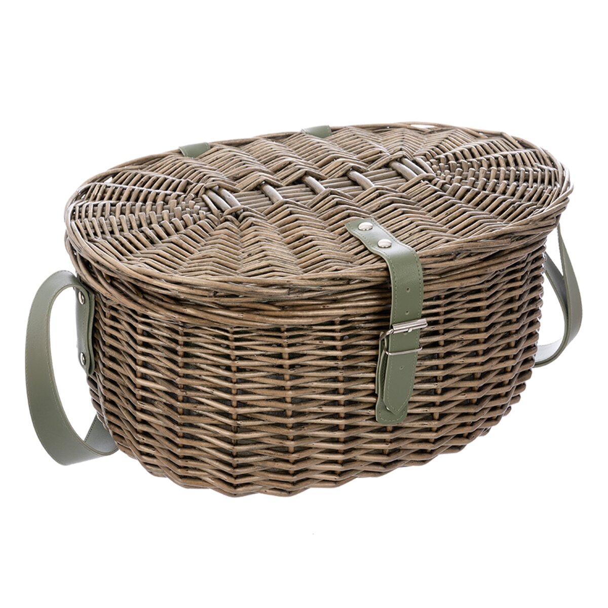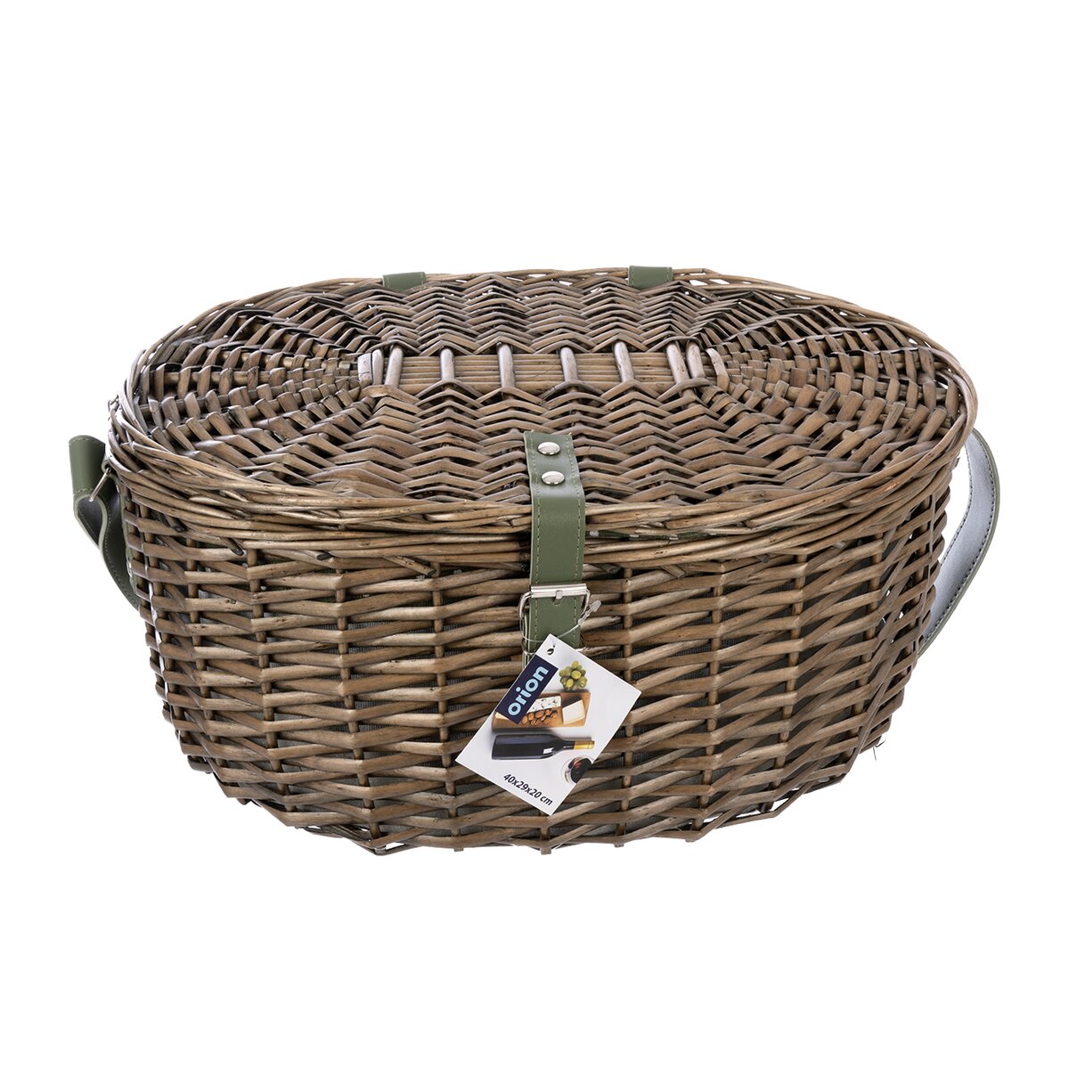 Kód produktu 730568Prútený kôš na piknik s poklopom z kolekcie VERDE je ideálnym doplnkom pre pohodové chvíle strávené v prírode. Je vyrobený s dôrazom na tradičné remeselné spracovanie, a preto sa môže každý kus mierne líšiť v rozmeroch - jedná sa o ručnú prácu. Kôš je vybavený praktickým popruhom, ktoré zaisťuje ľahké a pohodlné prenášanie. Poklop je zaistený kovovými retiazkami, ktoré držia veko v otvorenej polohe, a súčasťou je tiež pracka pre bezpečné uzavretie koša. Vnútorný priestor aj veko sú opatrené látkovou výstelkou, ktorá prispieva k estetickému vzhľadu a chráni obsah koša. Tento elegantný a funkčný prútený kôš je skvelou voľbou pre pikniky, výlety aj štýlové stolovanie na záhrade. Materiál: vŕbové prútie, 40% bavlna, 60% polyester, koženka, kov. Rozmery: 40x29x20 cm.