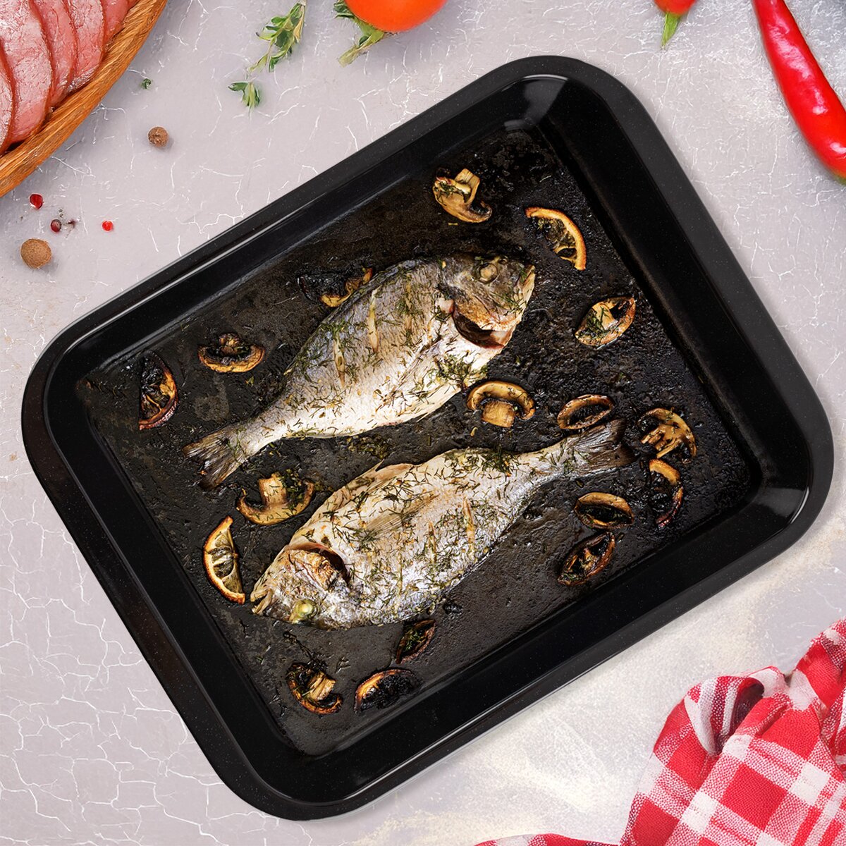 Kód produktu 127046Hlboký smaltovaný plech veľkosti 35,8x28x6 cm je ideálny na pečenie sladkých a slaných pokrmov, na zapekanie, gratinovanie alebo sušenie v rúre a je možné ho umývať v umývačke riadu.