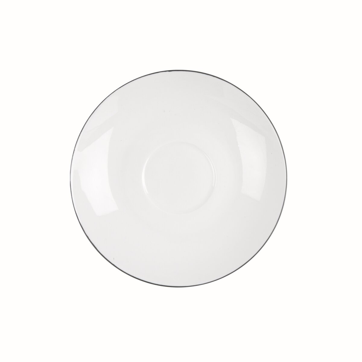 Kód produktu 129175Elegantná porcelánová podšálka má hladký biely povrch a je zdobená jemnou čiernou linkou po okraji, ktorá podčiarkuje jej vycibrený vzhľad. Ideálna k hrnčeku na espresso 132215 – štýlový doplnok pre každého milovníka kávy. Materiál: New Bone China - veľmi kvalitný, pevný a odolnejší ako bežný porcelán. Rozmery: pr. 14,7 cm. Možno umývať v umývačke a použiť v MVR.