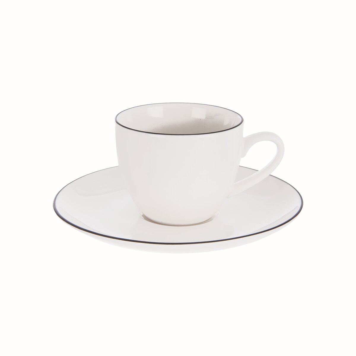 Kód produktu 129174Elegantná porcelánová podšálka má hladký biely povrch a je zdobená jemnou čiernou linkou po okraji, ktorá podčiarkuje jej vycibrený vzhľad. Ideálna k hrnčeku na espresso 132215 – štýlový doplnok pre každého milovníka kávy. Materiál: New Bone China - veľmi kvalitný, pevný a odolnejší ako bežný porcelán. Rozmery: pr. 13 cm. Možno umývať v umývačke a použiť v MVR.