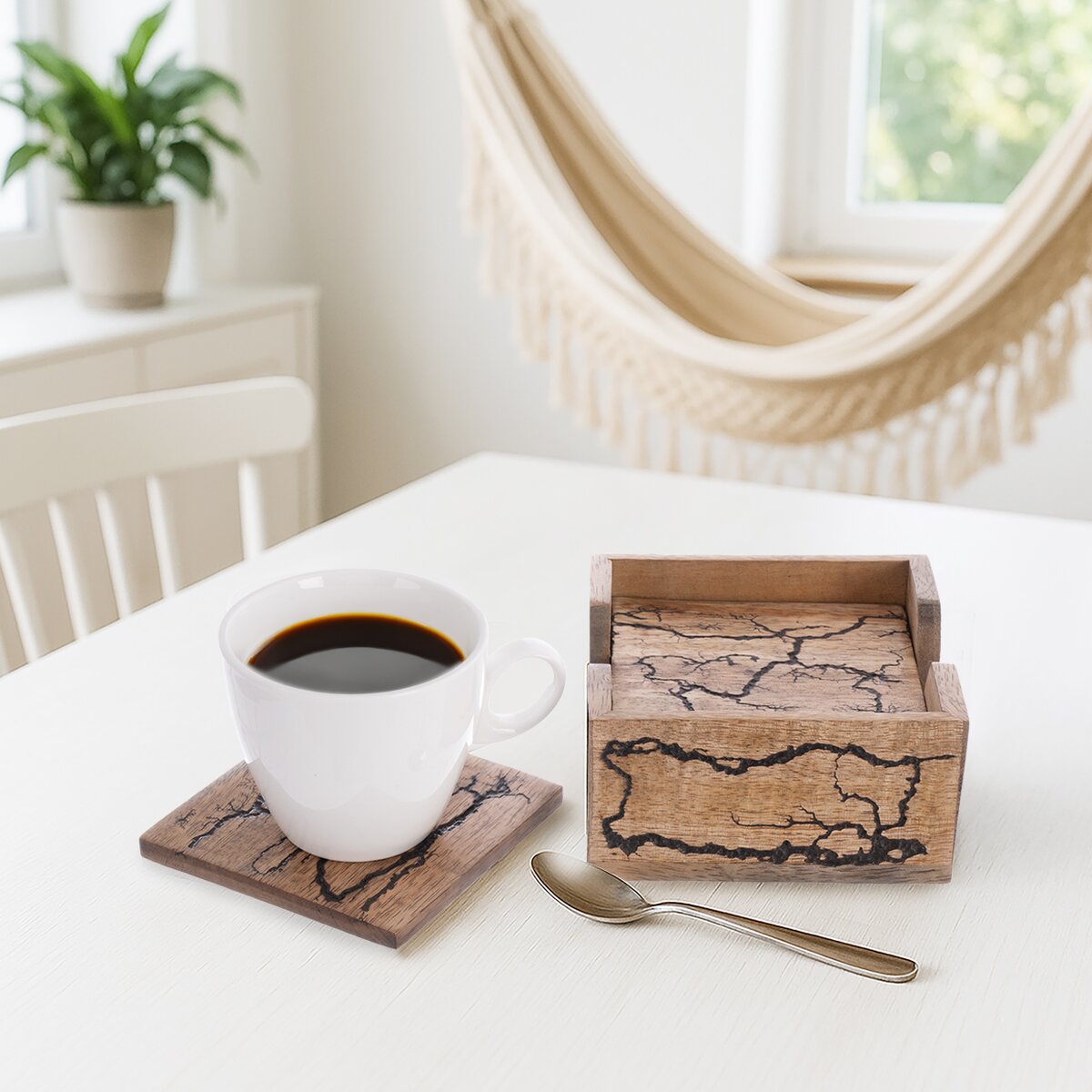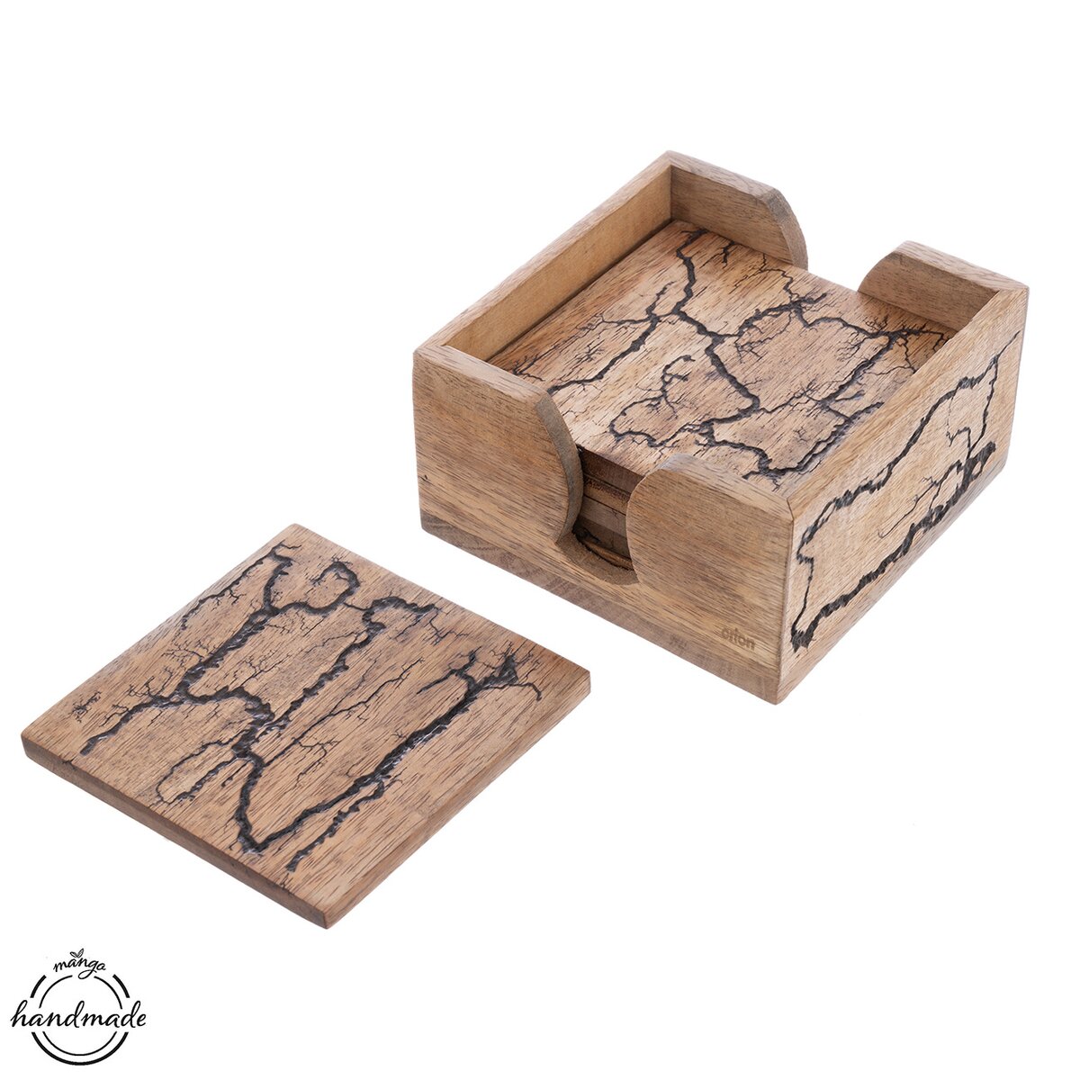 Kód produktu 710851Stojan so šiestimi podtáckami z kolekcie MANGO electric oživí vašu domácnosť a dodá interiéru originálny šmrnc. Ide o dizajnový, ale zároveň praktický kúsok. Každý kus je výsledkom ručnej výroby, a preto sa môže mierne líšiť, čo z neho robí jedinečný a osobitý doplnok. Nie je vhodný do umývačky riadu. Materiál: mangové drevo. Rozmery: stojan cca 11,5x11,5x6 cm, podtácka cca 10x10x0,7 cm.
