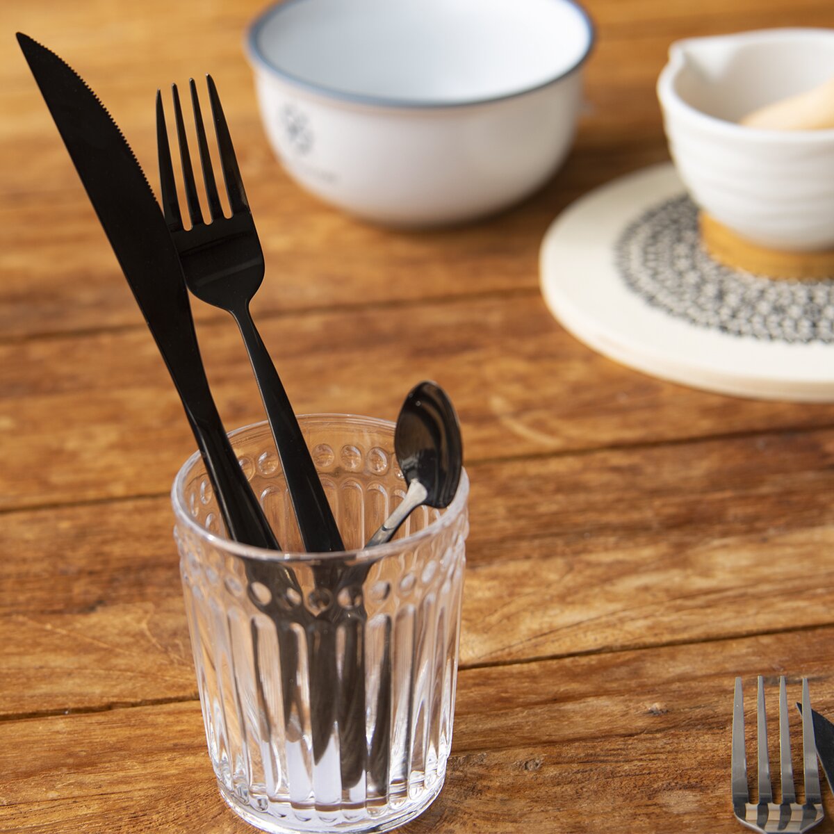 Poháre s plastickým vzorom. Materiál: sklo. Rozmery: objem 0,32 l, pr. 8 cm, v. 10 cm.