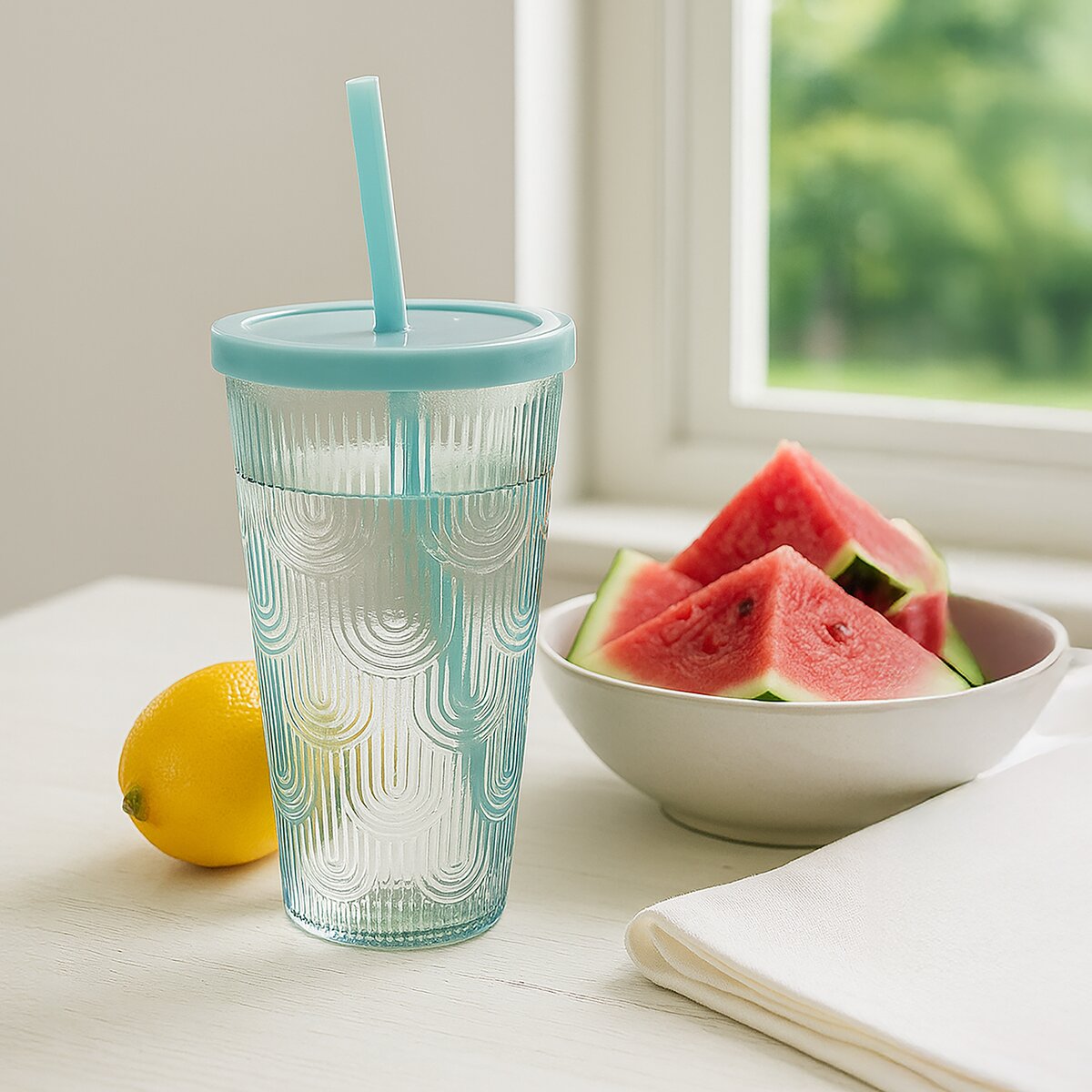 Kód produktu 129358Sklenený pohár s viečkom a slamkou je ideálny na vodu, džús, kávu alebo domácu malinovku. Slamka a viečko zaisťuje pohodlné pitie. Pohár je dostupný v štyroch farebných variantoch. Nie je vhodný do umývačky riadu. Materiál: sklo, plast PE (viečko), plast PP (slamka). Rozmery: objem 480 ml, priemer. 9 cm, d. slamky 20 cm, celkové v. 20,5 cm, v. poháre 15,5 cm.