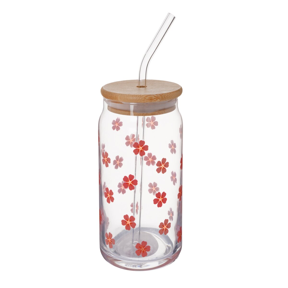 Kód produktu 129360Doprajte si chvíle pohody s elegantným pohárom zdobeným drobnými kvietkami z borosilikátového skla. Tento kúsok prináša sviežosť a radosť do každodenného stolovania. Vďaka viečku s tesnením sa nemusíte báť vyliatia (je nutné poriadne viečko zatlačiť). Viečko umožňuje priame pitie pomocou priloženej sklenenej slamky, alebo je možné pohár používať samostatne bez viečka a slamky. Skvele sa hodí pre domácu limonádu, ovocnú šťavu alebo akýkoľvek iný obľúbený nápoj. Pohár je vyrobený z kvalitného odolného skla, vďaka čomu je vhodný na bežné používanie. Materiál: borosilikátové sklo, bambus (viečko), silikón (tesnenie). Rozmery: pr. 7,5 cm, v. 14,5 cm, d. slamky 21 cm, objem 500 ml. Nie je vhodná do umývačky a mikrovlnnej rúry. Mix dekorov.