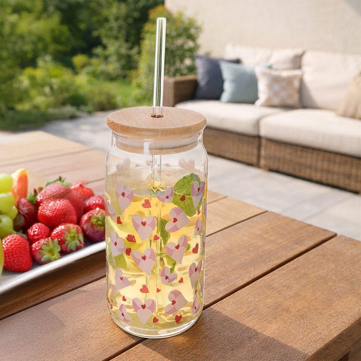 Kód produktu 129361Doprajte si chvíle pohody s elegantným jemne zdobeným pohárom z borosilikátového skla. Tento kúsok prináša sviežosť a radosť do každodenného stolovania. Vďaka viečku s tesnením sa nemusíte báť vyliatia (je nutné poriadne viečko zatlačiť). Viečko umožňuje priame pitie pomocou priloženej sklenenej slamky, alebo je možné pohár používať samostatne bez viečka a slamky. Skvele sa hodí pre domácu limonádu, ovocnú šťavu alebo akýkoľvek iný obľúbený nápoj. Pohár je vyrobený z kvalitného odolného skla, vďaka čomu je vhodný na bežné používanie. Materiál: borosilikátové sklo, bambus (viečko), silikón (tesnenie). Rozmery: pr. 7,5 cm, v. 14,5 cm, d. slamky 21,5 cm, objem 500 ml. Nie je vhodná do umývačky a mikrovlnnej rúry. Mix dekorov.
