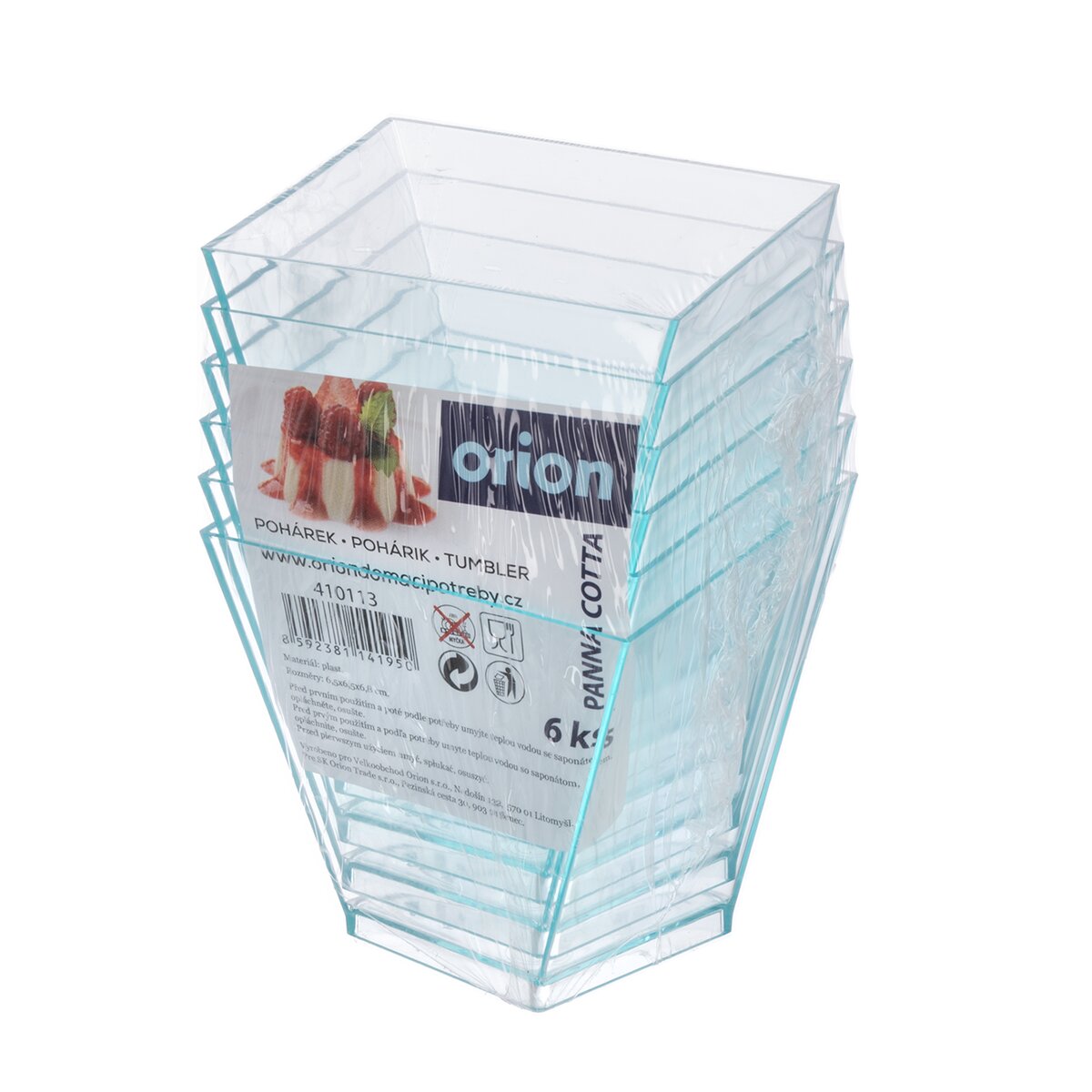 Kód produktu 410113Sada 6 ks transparentných asymetrických hranatých pohárikov na skvelé chladené sladké dezerty typu Panna Cotta, Tiramisu aj slané pochúťky a peny.