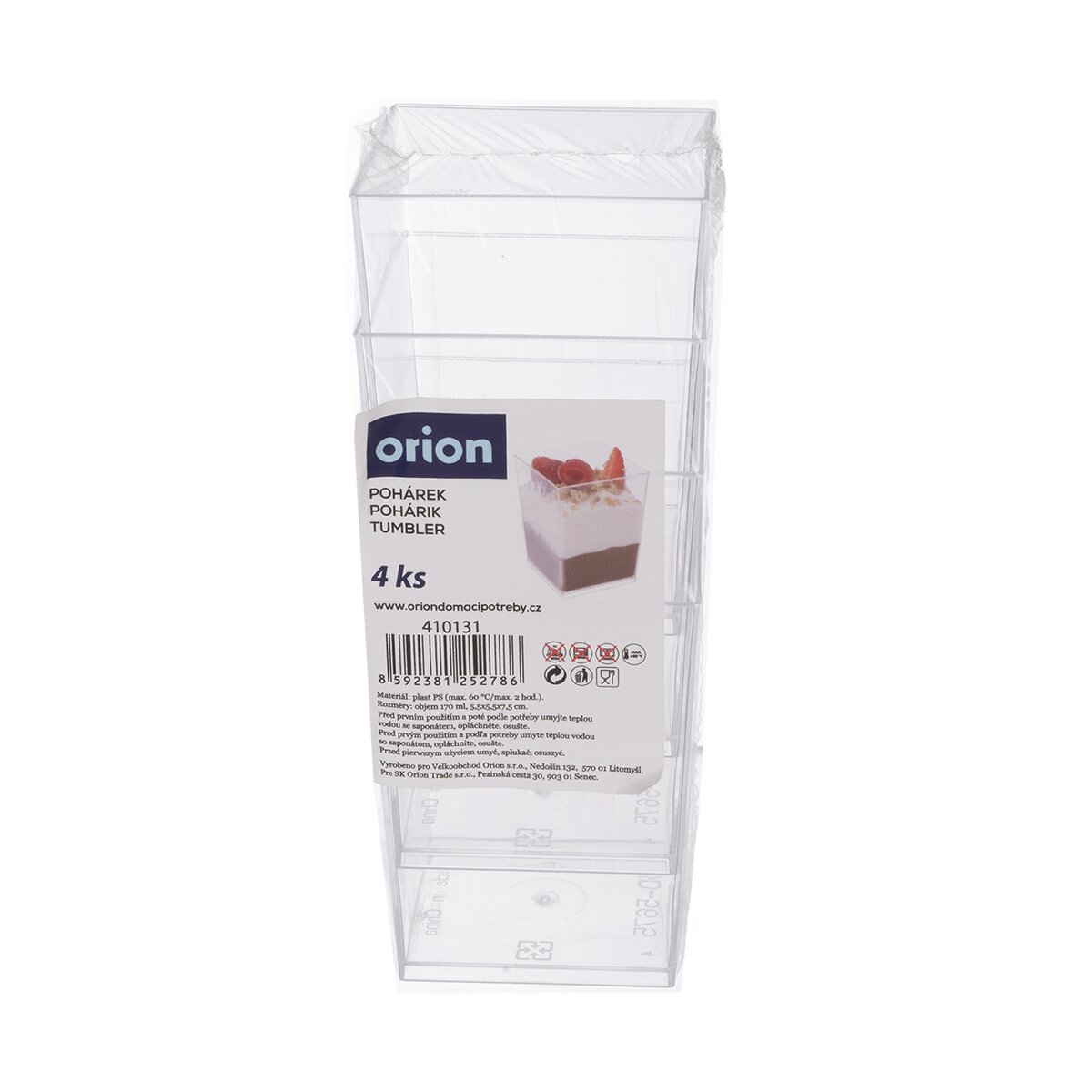 Kód produktu 410131Sada 4 ks transparentných hranatých pohárikov je ideálna na chladené sladké dezerty typu Panna cotta, Tiramisu aj slané pochúťky a peny.