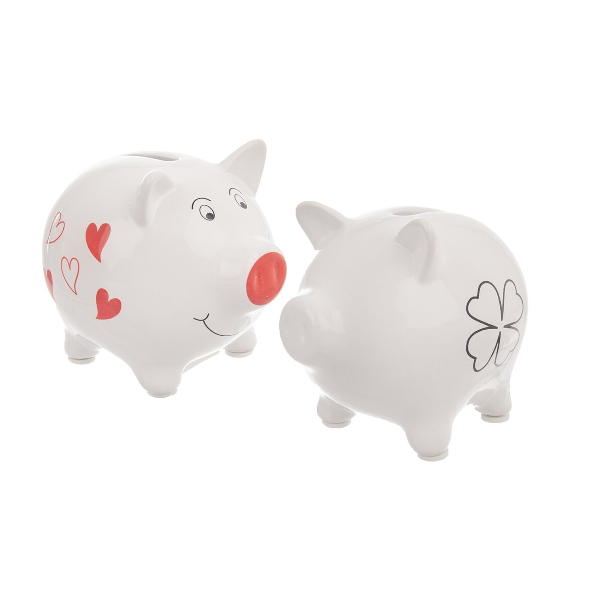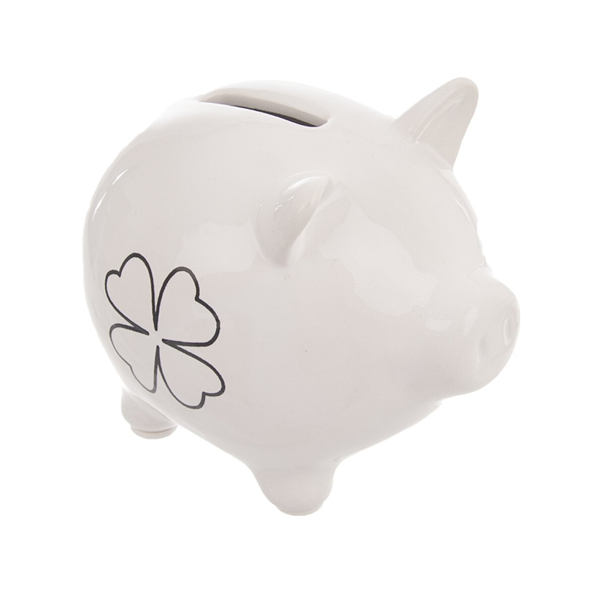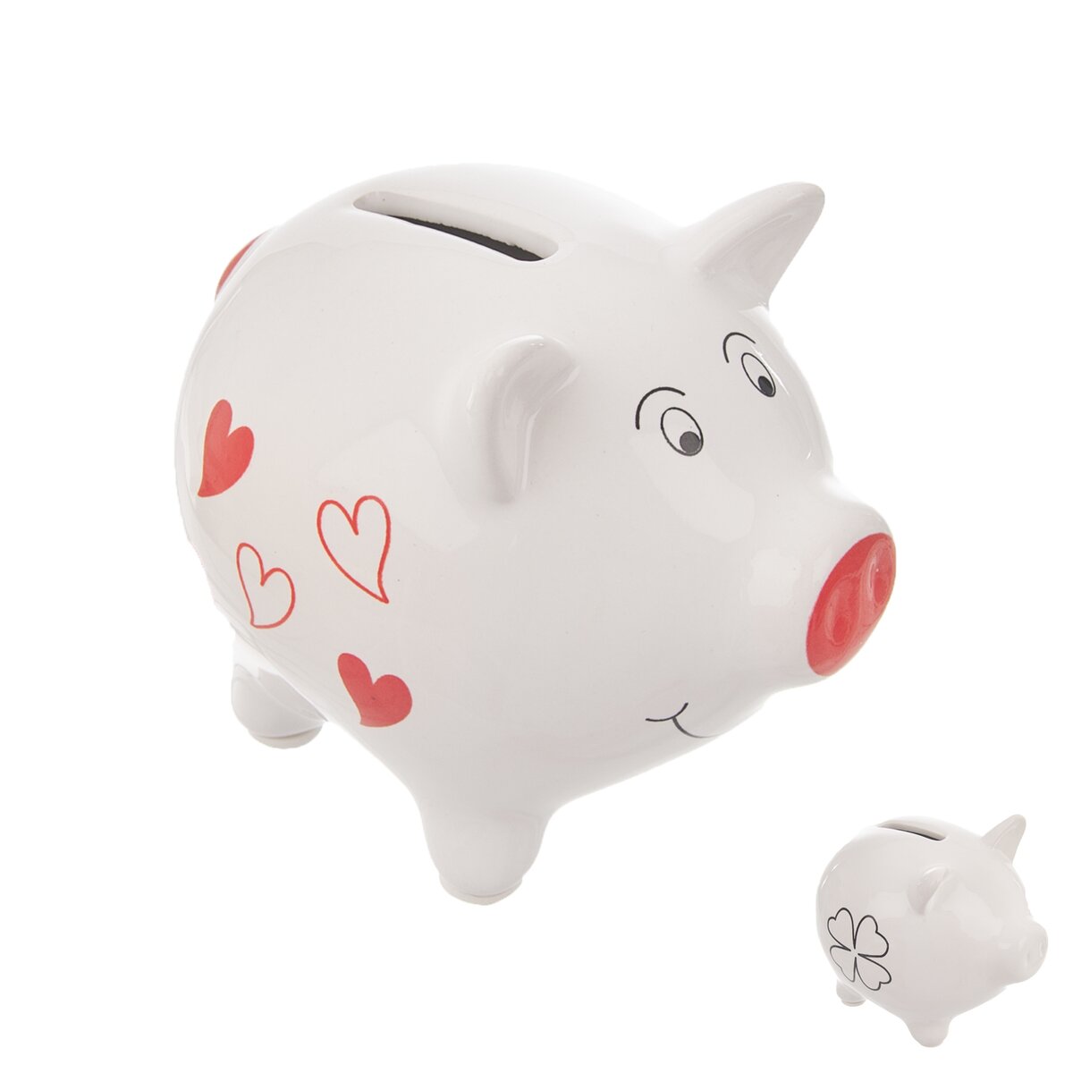 Pokladnička PRASIATKO. Materiál: keramika. Assort dekorov. Rozmery: 9x7x7,5 cm.