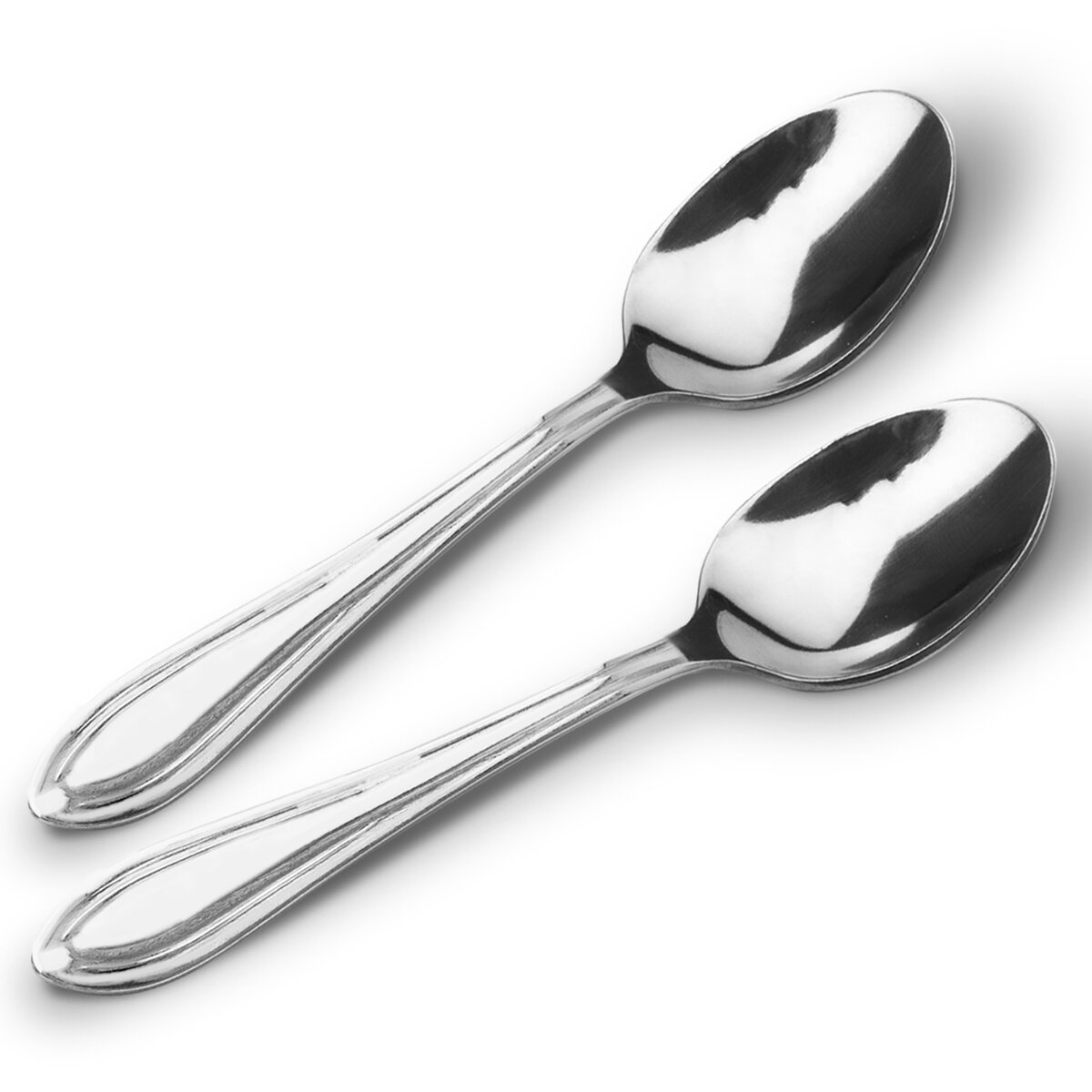 Viac informáciíLesklé nerezové lyžice v jednoduchom dizajne, s elegantnou pretlačovanou linkou na rukoväti. Majú klasický tvar a zužujúci krčok, navyše sa príjemne držia v ruke.