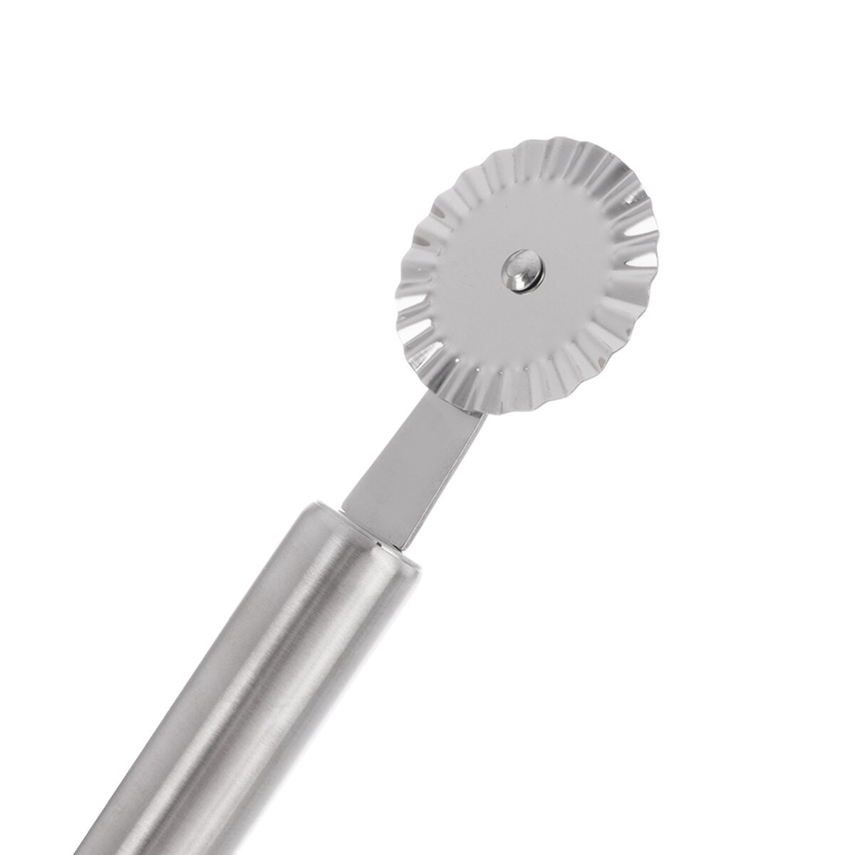 Kód produktu 142023Praktické radielko z kolekcie KITCH je vyrobené z nerezu a je určené na krájanie a tvarovanie plátov cesta. Vlnitý, ozdobný brit dodá okrajom cesta dekoratívny vzhľad, čo je ideálne pri príprave knedlí, buchiet, domácich cestovín alebo sladkého i slaného pečiva. Rukoväť radielka je vybavená praktickým očkom, ktoré umožňuje ľahké zavesenie a úsporu miesta v kuchyni. Materiál: nerezová oceľ. Rozmery: pr. 4 cm, d. 18 cm. Nie je vhodné do umývačky riadu.