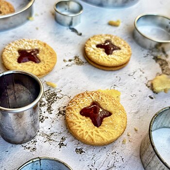 Na každých 250 g hladkej múky 1 žĺtok a 1 g soli. Všetky suroviny navážame do misy a spracujeme buď ručne, alebo vložíme do misy k robotu a pomocou K metly vymiesime hladké kompaktné cesto, ktoré zabalíme do fólie a necháme aspoň hodinu zachladiť v chladničke. Rozvaľkáme na hrúbku 3 mm a vykrájame tvary. Pečieme na 170 stupňov, režim horúcozduch, kým nie sú zlatohnedé okraje.