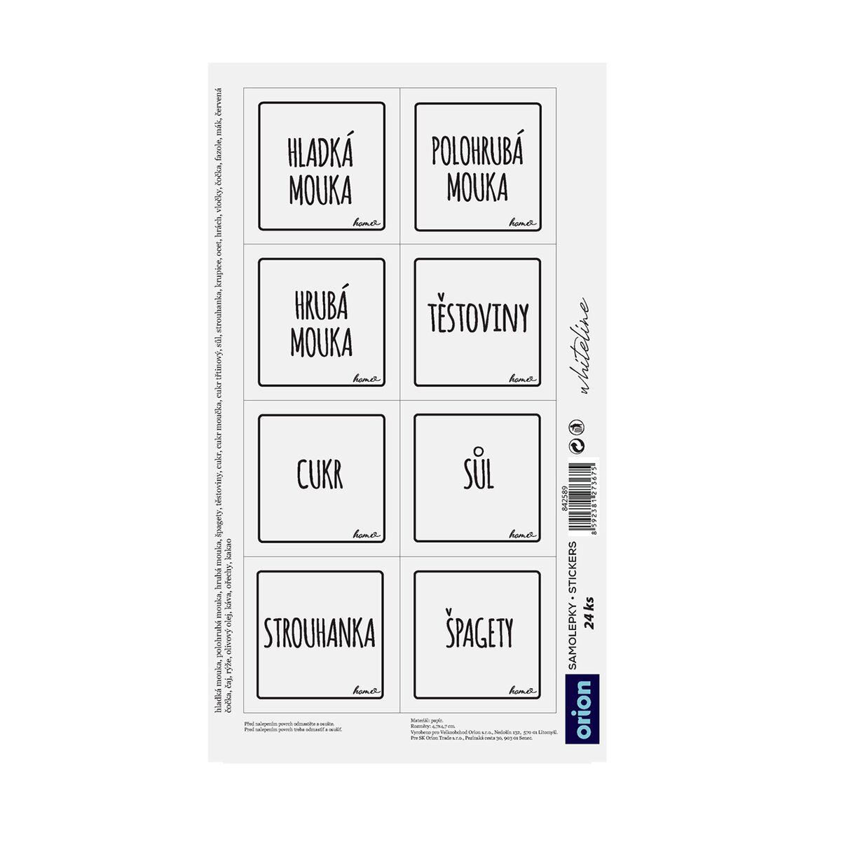 Kód produktu 842589Samolepky s popisky. Štvorcový tvar. 24 samolepiek. Biele. Rozmery: 1 samolepka 4,7x4,7 cm. Možno použiť na dózy WHITELINE, na sklenené dózy, koreničky...