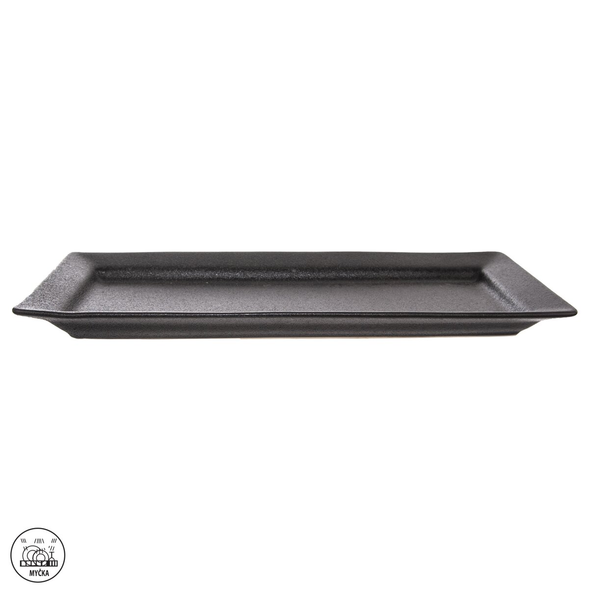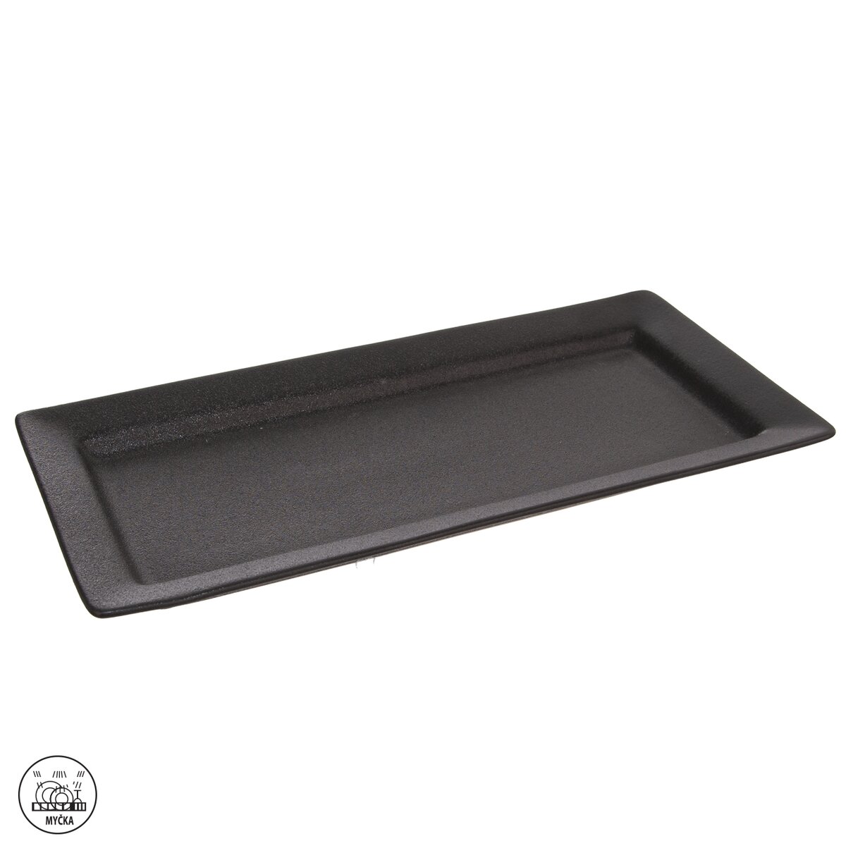 Kód produktu 153791Tácka servírovacia obdlžníková. Materiál: čierny porcelán – hrubý povrch. Možno myť v umývačke na riad. Rozmery: 30x14x2,5 cm.