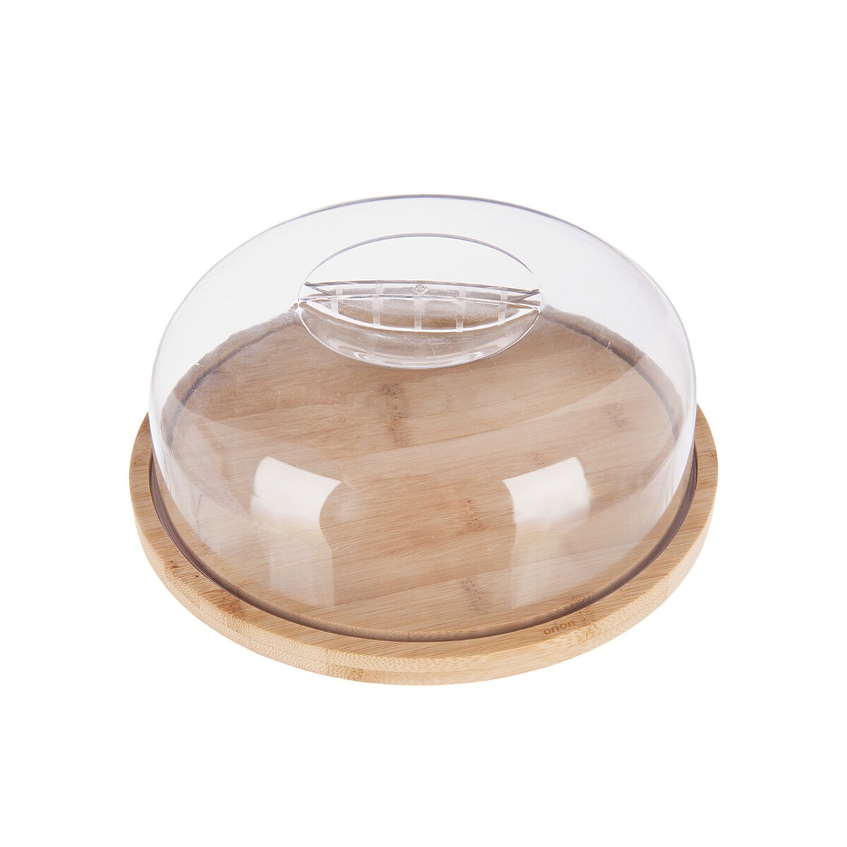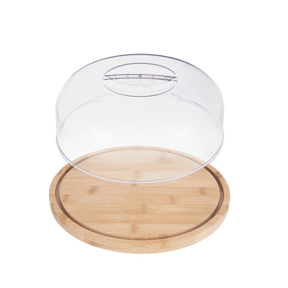 Kód produktu 126854Servírovacia bambusová doska s plastovým poklopom je skvelá na uloženie dobrôt, ktoré sú takto chránené pred oschnutím aj nepríjemným hmyzom. Uložiť do nej môžete slané aj sladké dobroty – chlebíčky, tortilly, obložený tanier, zákusky, torty, rolády, buchty, koláče, ovocie, zeleninu, syry, údeninu... Okrem uloženia ju môžete využiť aj na servírovanie. Predovšetkým vonku na terase oceníte jej priehľadný poklop, ktorý nasadzujete do drážky v doske, takže sedí pevne a neposúva sa. Materiál: bambus, plast PS. Rozmery: pr. 26 cm, v. 9 cm, v. dosky 1,5 cm.