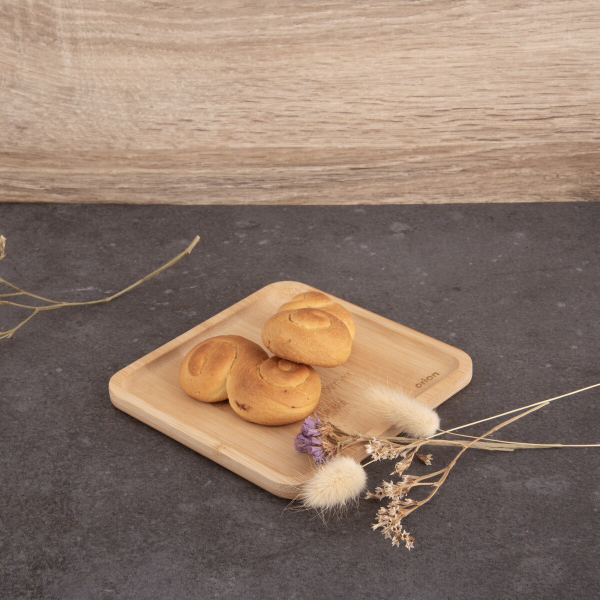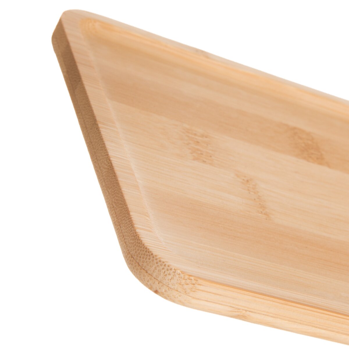 Kód produktu 155022Servírovacia tácka je praktickým aj estetickým doplnkom, ktorý sa skvele hodí na podávanie jednohubiek, chlebíčkov, koláčikov alebo dezertov. Vďaka svojej univerzálnosti ju možno využiť aj na servírovanie kávy spoločne s vodou či malým zákuskom, čo ocenia najmä prevádzkovatelia kaviarní, cukrární a podobných zariadení. Tácka zároveň môže slúžiť ako dekoratívny podnos na stôl – možno naň umiestniť malú vázičku s kvetinami alebo sušenou trávou, rovnako ako prírodné dekorácie typu kamienkov, mušlí či šišiek. V neposlednom rade ju využijete aj ako štýlové odkladacie miesto na kľúče, šperky, hodinky alebo obľúbený parfém. Materiál: bambus. Rozmery: 14x14x1 cm. Nie je vhodný do umývačky a MVR.