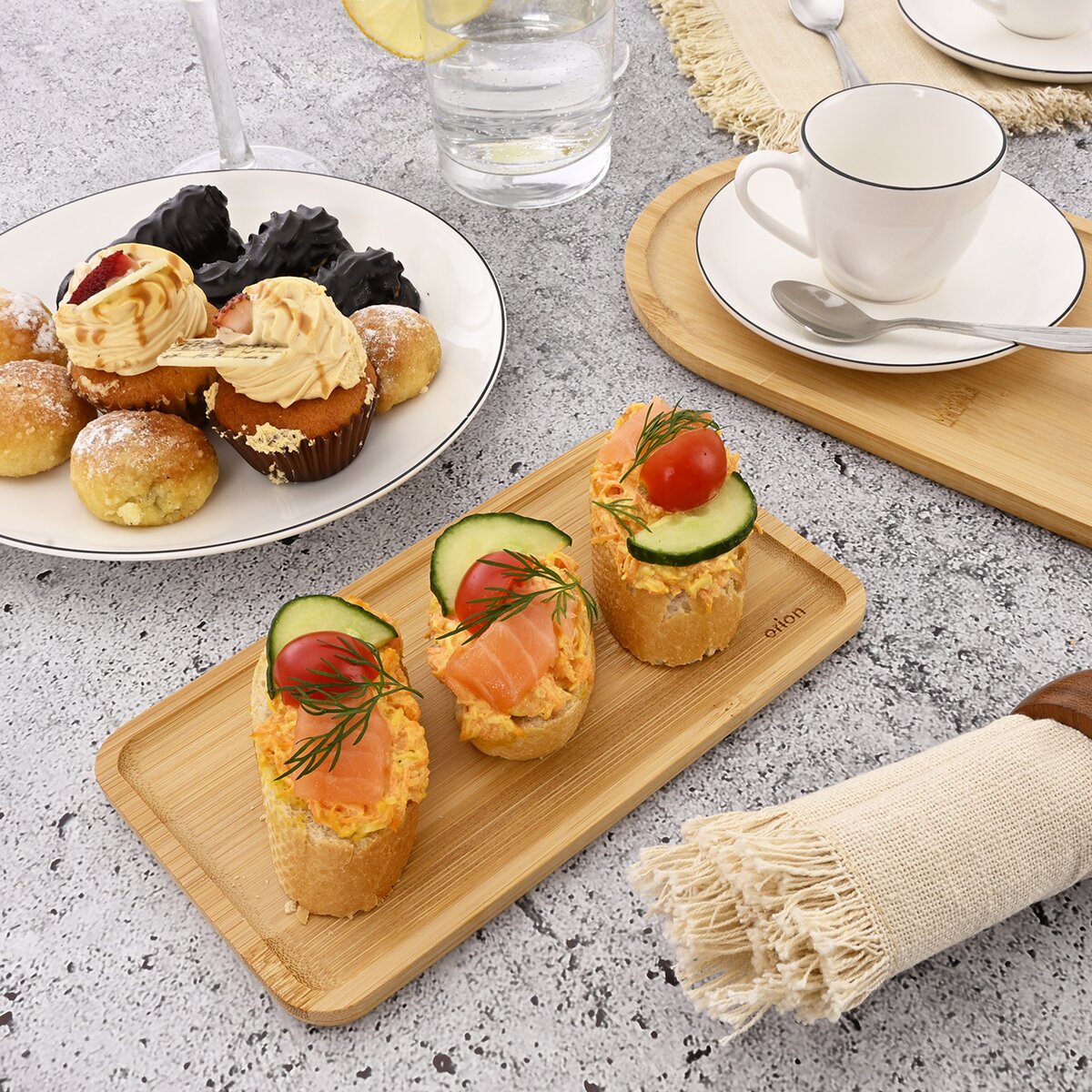 Kód produktu 155021Servírovacia tácka je praktickým aj estetickým doplnkom, ktorý sa skvele hodí na podávanie jednohubiek, chlebíčkov, koláčikov alebo dezertov. Vďaka svojej univerzálnosti ju možno využiť aj na servírovanie kávy spoločne s vodou či malým zákuskom, čo ocenia najmä prevádzkovatelia kaviarní, cukrární a podobných zariadení. Tácka zároveň môže slúžiť ako dekoratívny podnos na stôl – možno naň umiestniť malú vázičku s kvetinami alebo sušenou trávou, rovnako ako prírodné dekorácie typu kamienkov, mušlí či šišiek. V neposlednom rade ju využijete aj ako štýlové odkladacie miesto na kľúče, šperky, hodinky alebo obľúbený parfém. Materiál: bambus. Rozmery: 20x11x1 cm. Nie je vhodný do umývačky a MVR.
