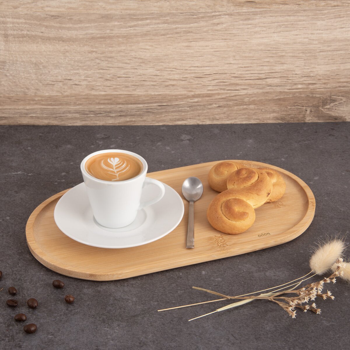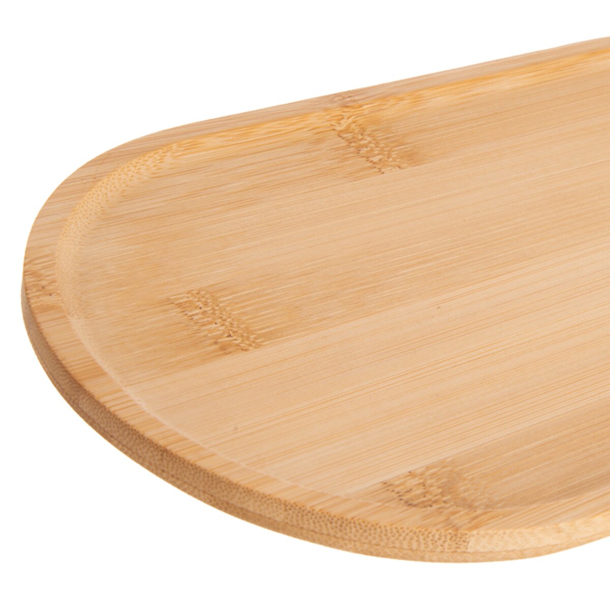 Kód produktu 155025Servírovacia tácka je praktickým aj estetickým doplnkom, ktorý sa skvele hodí na podávanie jednohubiek, chlebíčkov, koláčikov alebo dezertov. Vďaka svojej univerzálnosti ju možno využiť aj na servírovanie kávy spoločne s vodou či malým zákuskom, čo ocenia najmä prevádzkovatelia kaviarní, cukrární a podobných zariadení. Tácka zároveň môže slúžiť ako dekoratívny podnos na stôl – možno naň umiestniť malú vázičku s kvetinami alebo sušenou trávou, rovnako ako prírodné dekorácie typu kamienkov, mušlí či šišiek. V neposlednom rade ju využijete aj ako štýlové odkladacie miesto na kľúče, šperky, hodinky alebo obľúbený parfém. Materiál: bambus. Rozmery: 28x15x1 cm. Nie je vhodný do umývačky a MVR.
