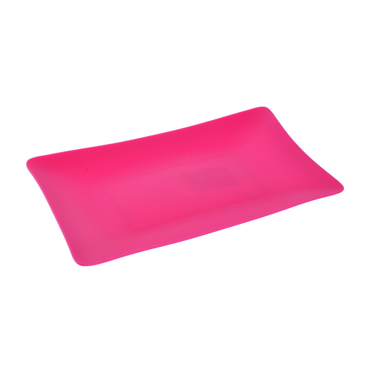 Tácka na servírovanie najrôznejších dobrôt a chlebíčkov. Farebný výber. Materiál: plast. Rozmery: (šxhxv) 31,5x19,5x2,5 cm
