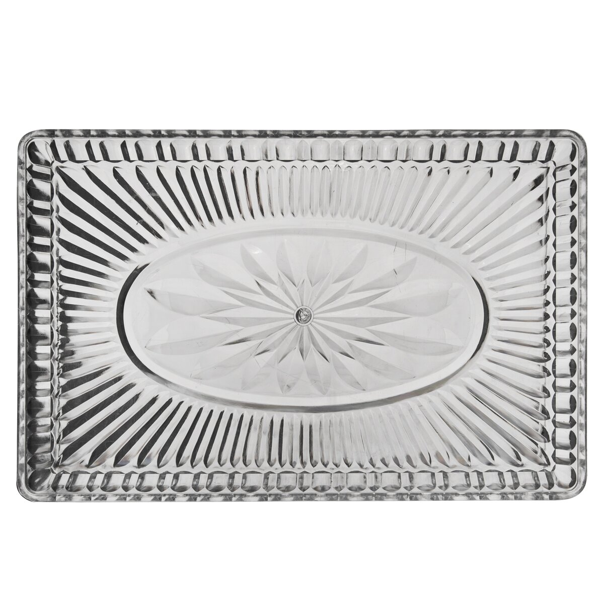 Kód produktu 153828Servírovacia transparentná plastová tácka v rozmere 33x21,5x2,5 cm, so špecifickým pretlačovaným vzorom.