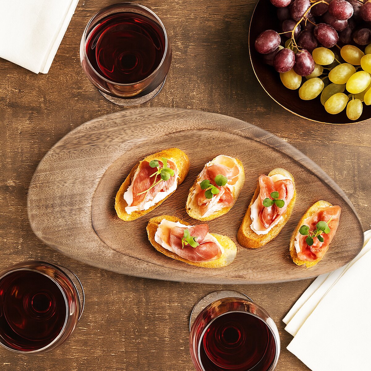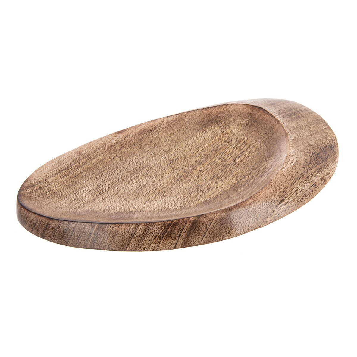 Kód produktu 153897Servírovacia tácka z prírodného materiálu v tvare oválu sa skvele hodí na servírovanie suchých plodov, sušeného ovocia, orechov, cukríkov, tort, cukroviniek, slaného drobného pečiva, chlebíčkov, jednohubiek... Samotná je peknou dekoráciou, možno ju doplniť prírodninami, kamienkami, sviečkou. Materiál: mangové drevo. Rozmery: 39x20x2,5 cm. Nedá sa umývať v umývačke.