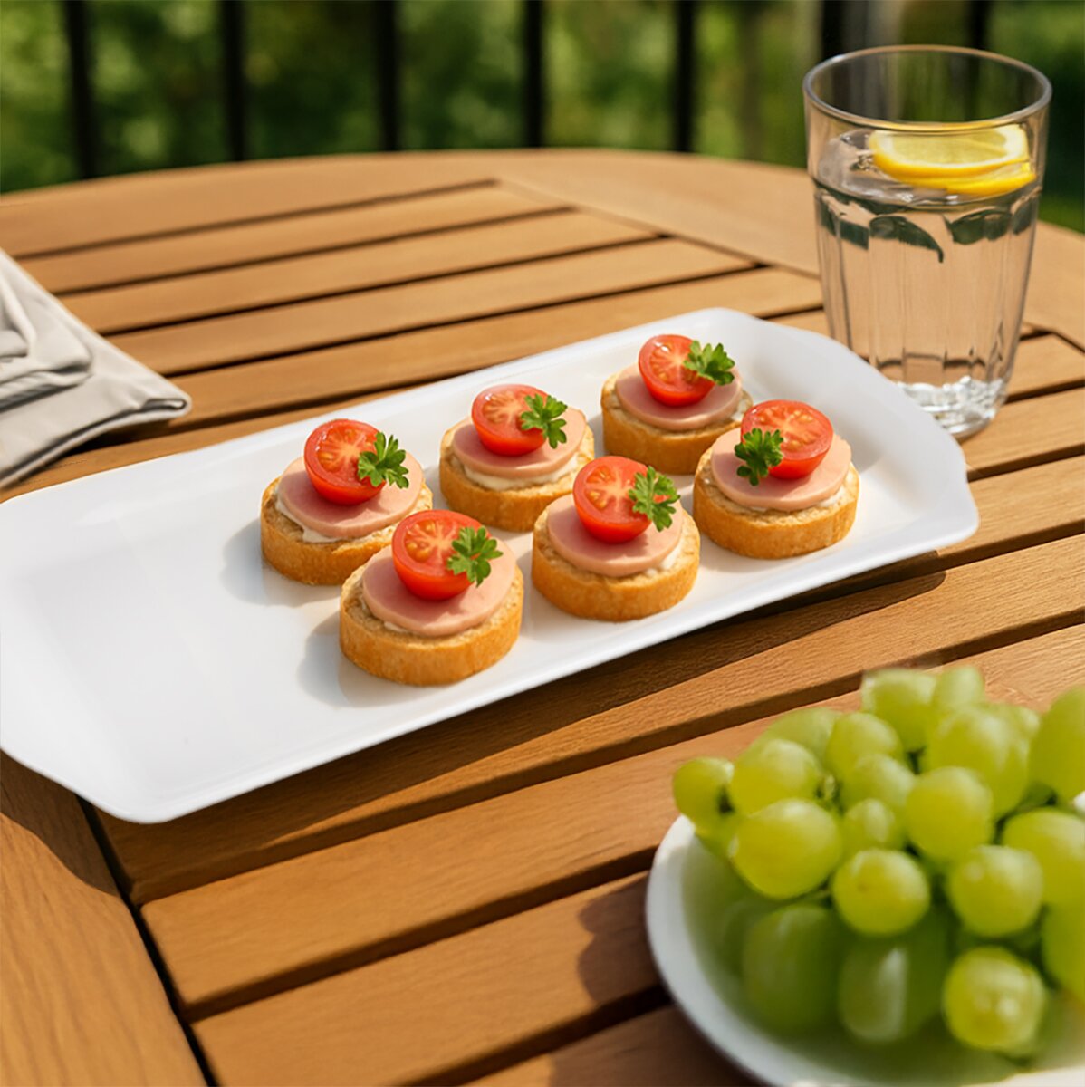 Kód produktu 155017Servírovacia tácka z porcelánu v elegantnom a odolnom prevedení zaujme nielen svojim vzhľadom, ale aj praktickosťou. Nadčasová biela farba dodáva tácke univerzálny a štýlový charakter, vďaka ktorému sa hodí ako na slávnostné príležitosti, tak aj na každodenné použitie. Je ideálna na servírovanie najrôznejších pokrmov, ako sú jednohubky, chlebíčky, rolády, dezerty, syry alebo napríklad ryby. Porcelán je nielen estetický, ale aj praktický – ľahko sa udržuje a je vhodný na umývanie v umývačke. Táto servírovacia tácka tak spája eleganciu, odolnosť a pohodlie pri servírovaní v jednom výrobku. Materiál: porcelán. Rozmery: 36x15,5x2,5 cm. Je vhodný do MVR a umývačky.