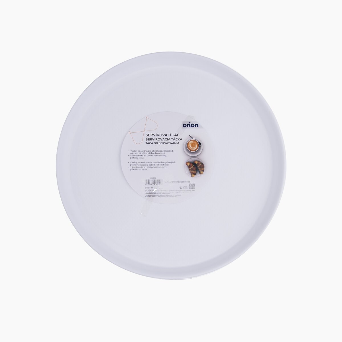 Tácka servírovacia okrúhla Vám pomôže ľahko a rýchlo obslúžiť Vašich hostí. Materiál: plast. Rozmery: priemer 34,5 cm, výška 2,5 cm.