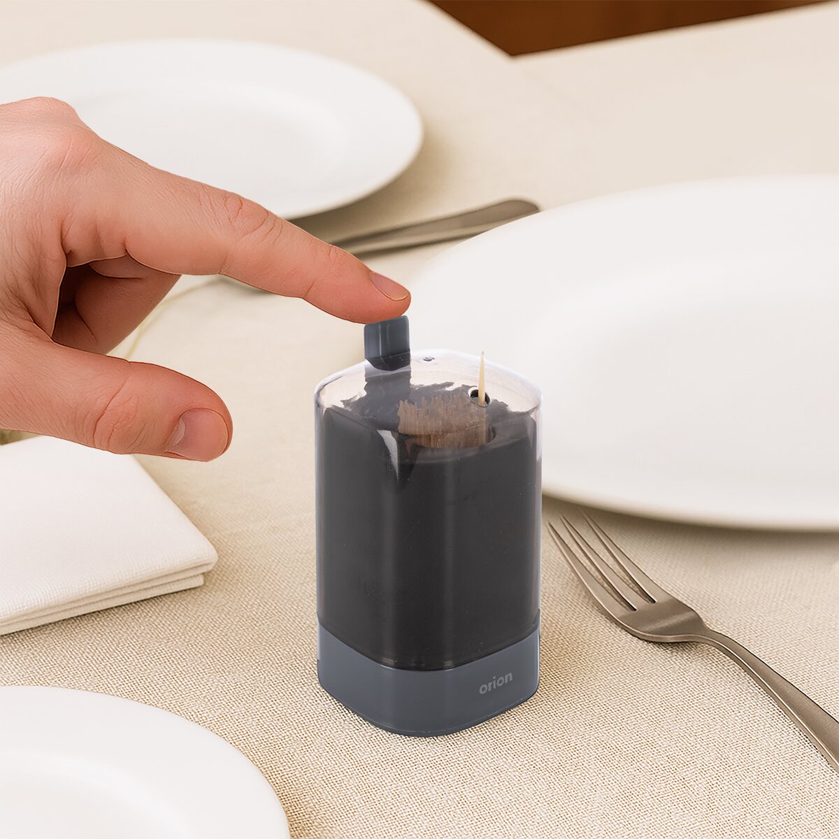 Kód produktu 144322Špáradlá – napichovátka v štvorcovom dávkovači 100 ks s možnosťou opätovného doplnenia špáradiel vysunutím priehľadnej časti. Špáradlo vysunieme pomocou stlačenia tlačidla v hornej časti. Materiál: bambus, plast PS (priehľadná a šedá časť), plast ABS (tlačidlo). Rozmery: d. cca 6,5 cm, krabička d. 5,2 cm, š. 5,2 cm, v. 10 cm.