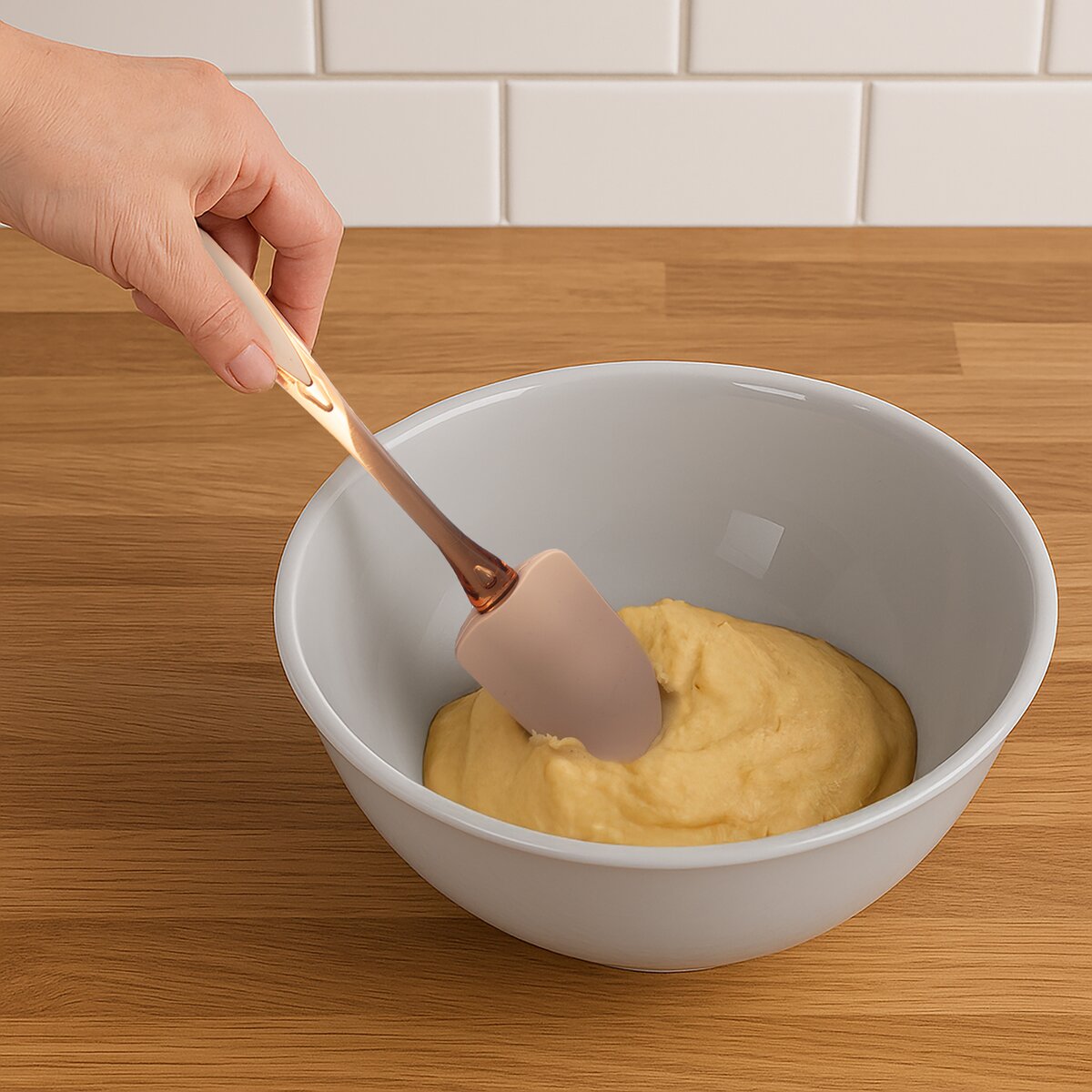 Kód produktu 142844Stierač s rukoväťou na zavesenie. Mäkké okraje dokonale priľnú k nádobe. Použite ju v kuchyni pri pečení. Možno umývať v umývačke riadu. Materiál: silikón - teplotná odolnosť -40 °C až +220 °C, plast PC -40 °C až +100 °C. Rozmery: š. 5 cm, d. 29,5 cm.