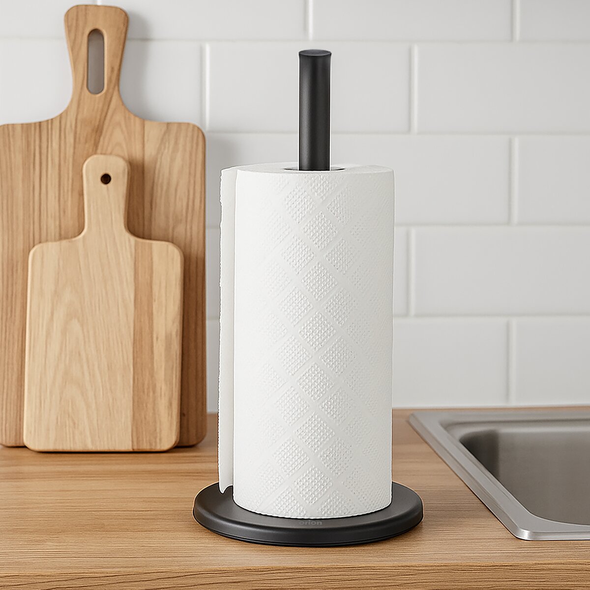 Kód produktu 154328Stojan na papierové utierky z kolekcie RADKA zaistí, že sa nebudú nikde pliesť, budú pohotovo po ruke, ľahko ich premiestnite. Vyzerá veľmi štýlovo. Vďaka ochrannej podložke nepoškriabe povrch stola, kuchynské dosky. Materiál: Materiál: kov (železo) s povrchovou úpravou, EVA (podložka). Rozmery: pr. 15 cm, v. 34 cm. Nie je vhodný do umývačky.