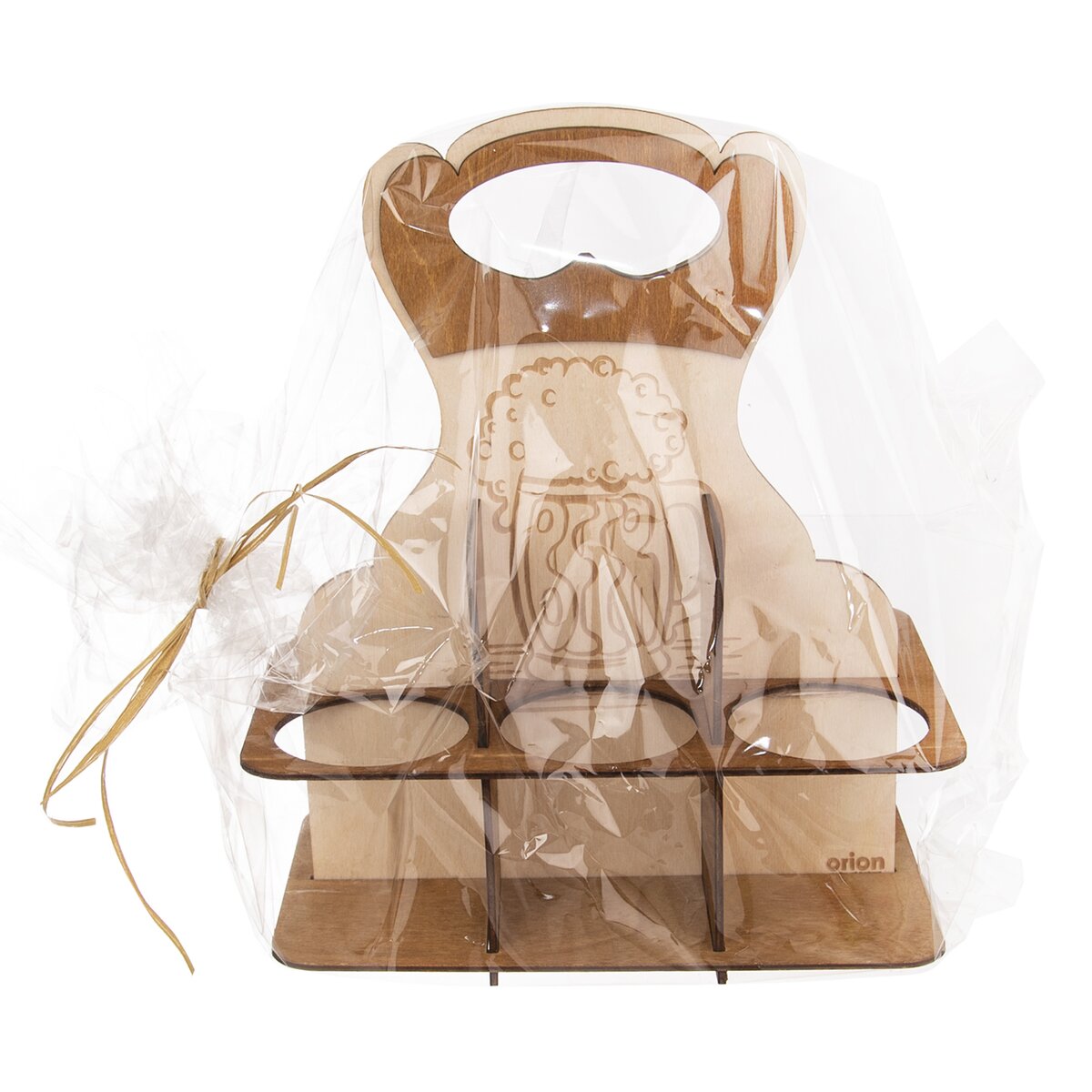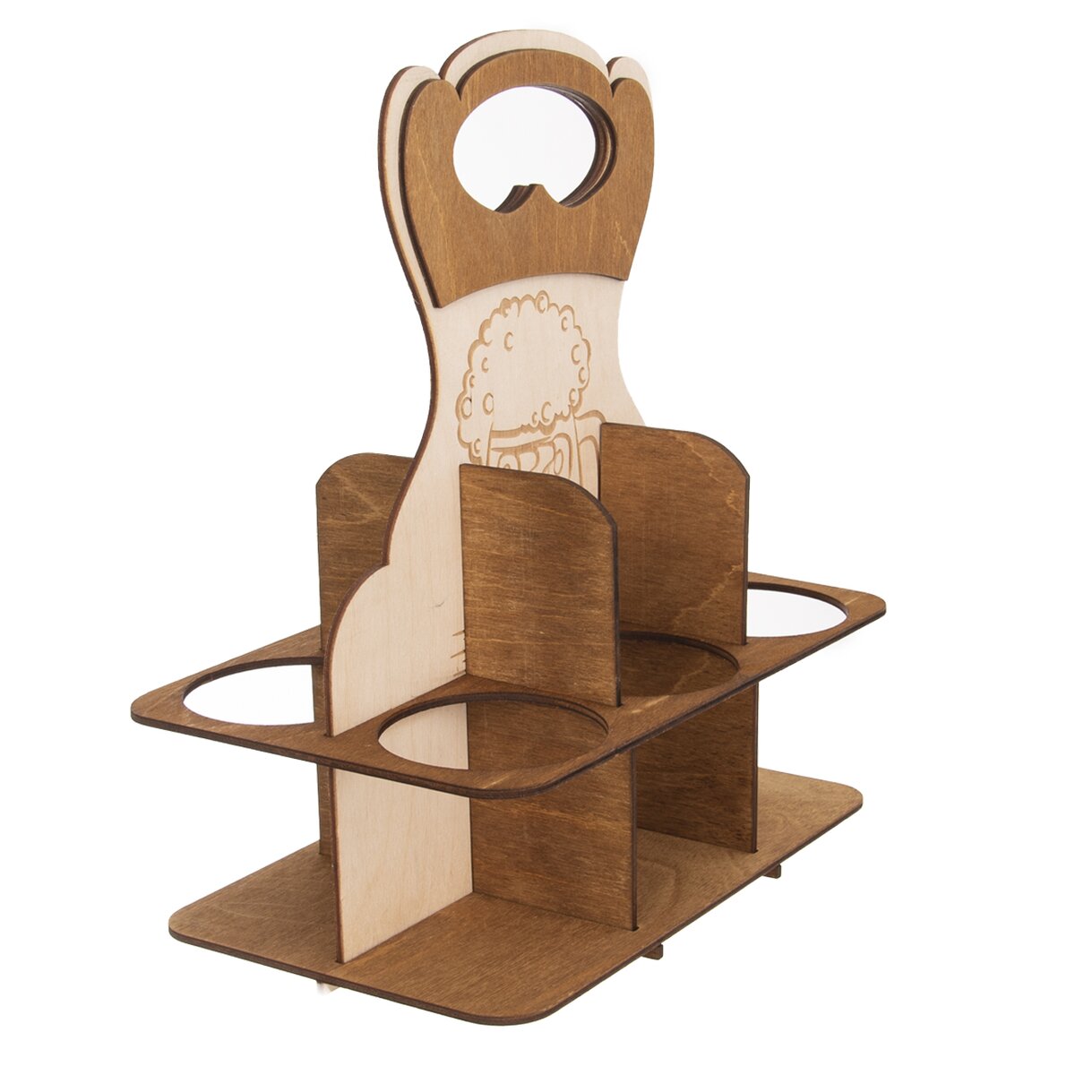 Stojan pomôže preniesť poháre alebo fľaše s nápojom a to veľmi pohodlne jednou rukou. Materiál: drevo. Rozmery: 24x15x29 cm. Nosnosť: 7 kg.