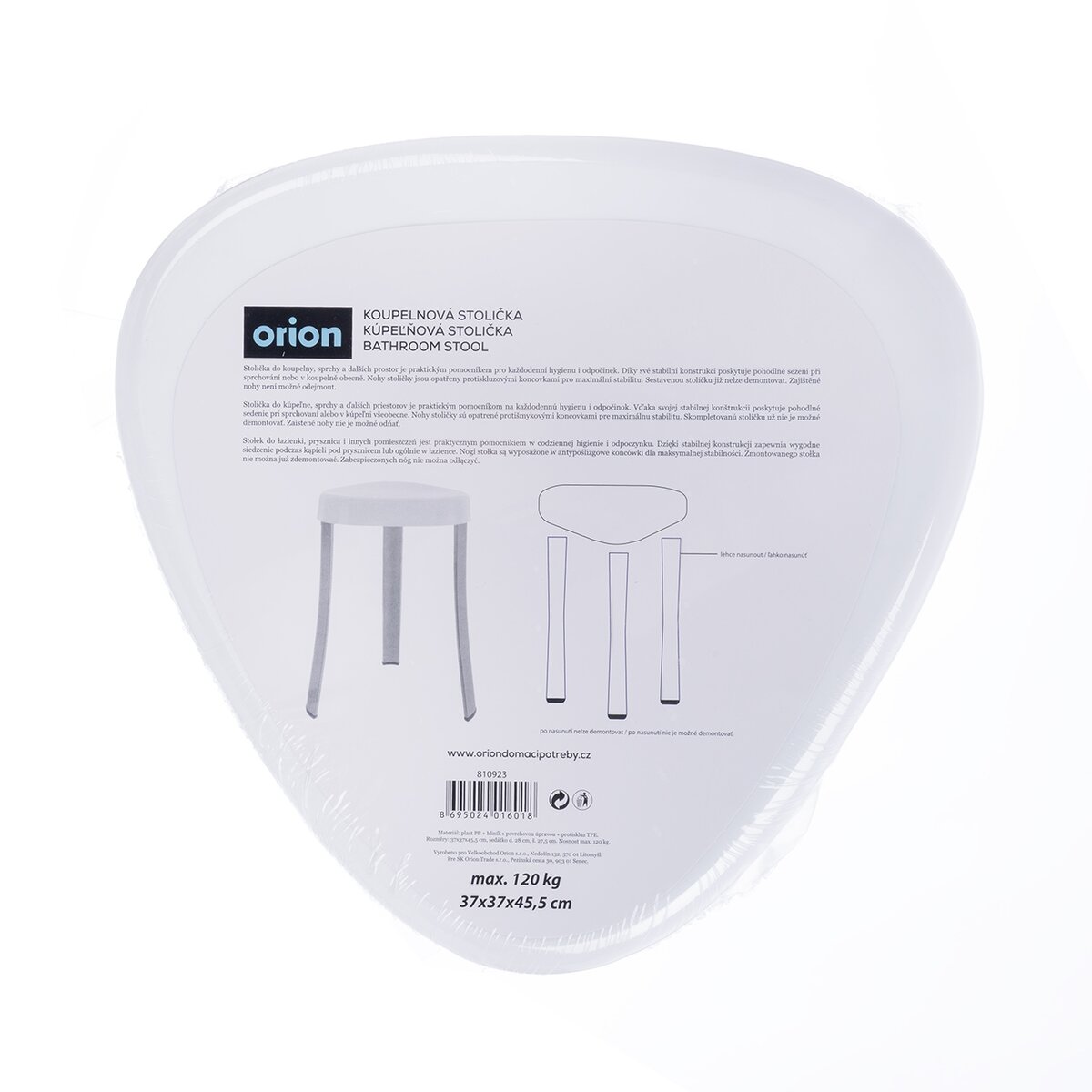 Kód produktu 810923Stolička do kúpeľne, sprchy a ďalších priestorov je praktickým pomocníkom na každodennú hygienu i odpočinok. Vďaka svojej stabilnej konštrukcii poskytuje pohodlné sedenie pri sprchovaní alebo v kúpeľni všeobecne. Maximálna nosnosť stoličky je 120 kg. Nohy stoličky sú opatrené protišmykovými koncovkami pre maximálnu stabilitu. Zostavenú stoličku už nie je možné demontovať. Zaistené nohy nie je možné odňať. Materiál: plast PP + hliník s povrchovou úpravou + protišmyk TPE. Rozmery: 37x37x45,5 cm, sedadlo d. 28 cm, š. 27,5 cm. Montážny list je súčasťou balenia.