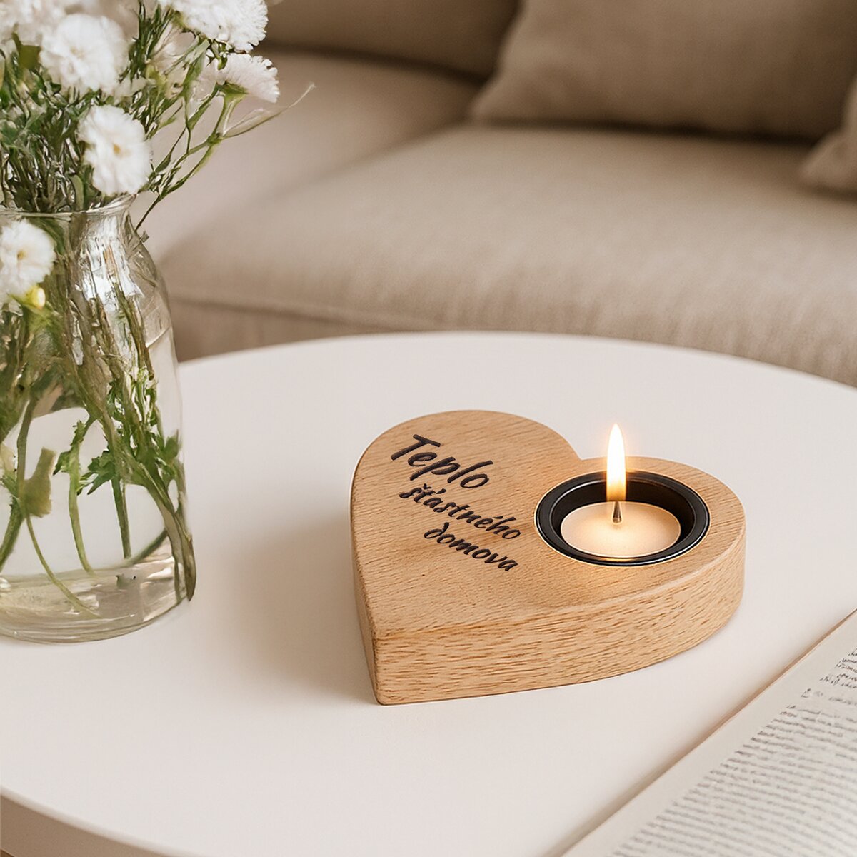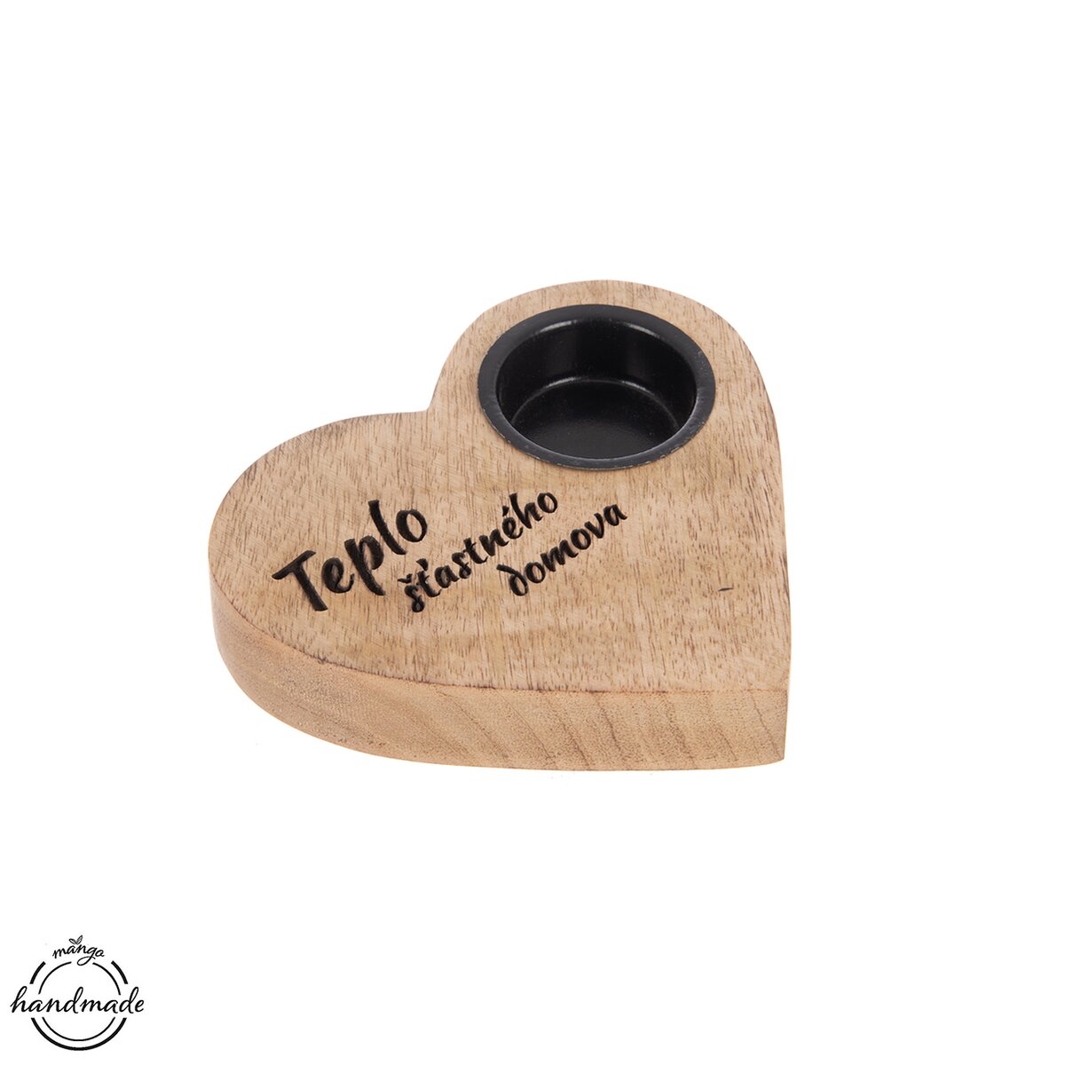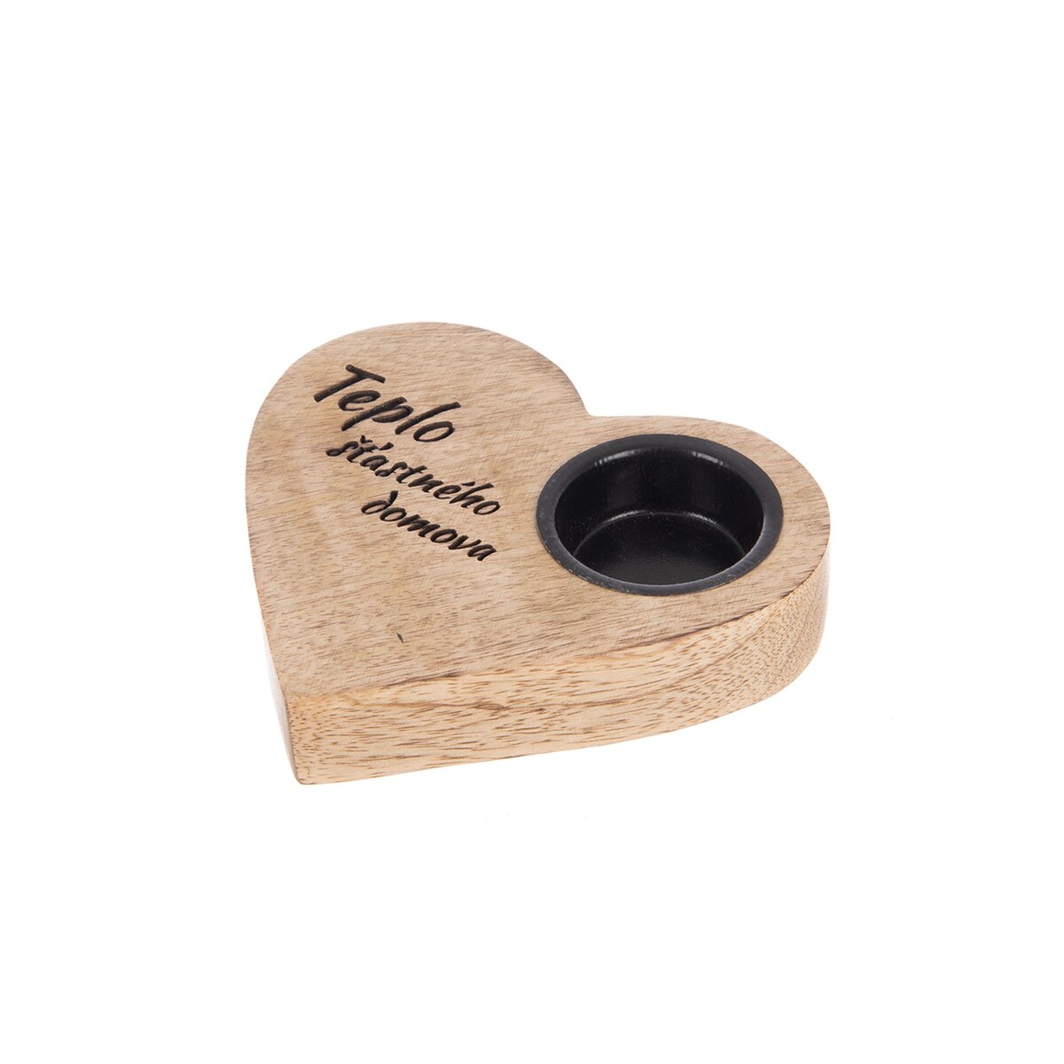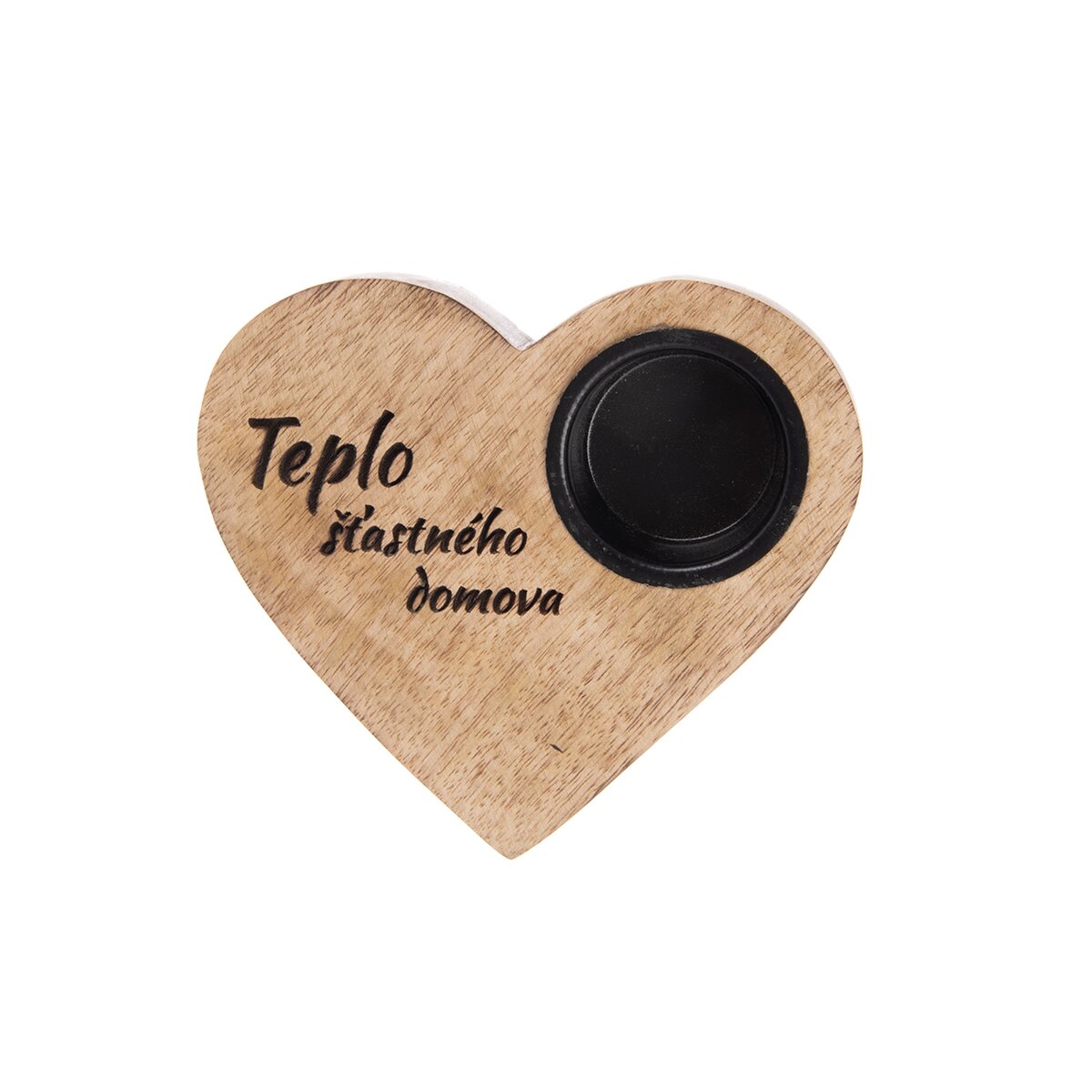 Kód produktu 351872Svietnik v tvare srdca je minimalistickým a štýlovým doplnkom do domácnosti. Na jeho povrchu je jemný nápis „Teplo šťastného domova“, ktorý navodí príjemnú atmosféru a pocit útulnosti. Tento svietnik sa skvele hodí na nočný stolík, poličku alebo konferenčný stolík a vďaka svojmu dizajnu je ideálnym darčekom pre vašich blízkych. Na jednu čajovú sviečku. Designed by Orion. Materiál: mangové drevo, kov. Rozmery: 13x12x2,5 cm.