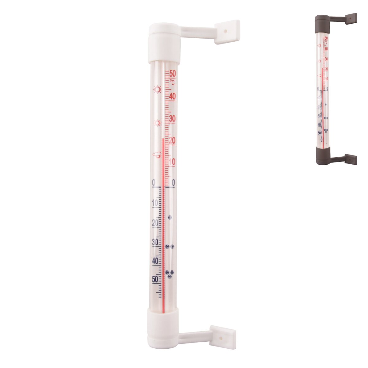 Teplomer využijete na meranie vonkajšej aj vnútornej teploty. Stupnica od - 60 ° C do 50 ° C. Materiál: plast, sklo, kerosín s farbivom. Pripevníte pomocou lepiacej pásky (napr. na plastový rám okna), nemusíte vŕtať do steny. V prípade tohto spôsobu pripevnenia je potrebné plochu pred prilepením dôkladne očistiť, odmastiť a osušiť. Môžete ho ale pripevniť aj klasicky pomocou klinčekov / skrutiek (nie sú súčasťou balenia). Možno upraviť smer úchytov s lepiacou plochou. Teplomer upevnite na miesto, ktoré nie je vystavené priamemu slnečnému žiareniu. Bez ortuti. Rozmery: d. 18 cm, š. 2 cm.
