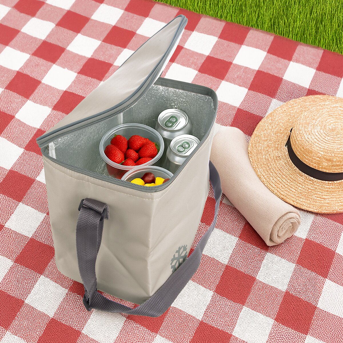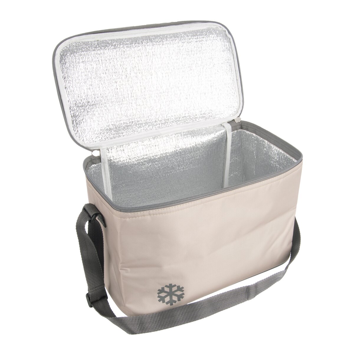 Kód produktu 731432Termotaška udrží vaše jedlo a nápoje v požadovanej teplote – chladené nápoje, šaláty, dezerty zostanú dlhšie osviežujúce, teplé jedlo nevychladne tak rýchlo. Zaistí Vám komfort stravovania na cestách. Termoizolačná vložka zaisťuje funkčnosť termotašky. Výborne sa dovnútra vojdú fľaše alebo niekoľko plastových dóz, ktoré poukladáte na seba. Uzatváranie na zips. Praktický je nastaviteľný popruh, ktorý umožní niesť termotašku na ramene. Materiál: hliníková fólia, polyesterová textília – veľmi odolná a praktická z hľadiska údržby, polyuretan, plast PET, kov (zips). Rozmery: približný objem vychádzajúci z rozmerov 8 l, 31x17x20 cm.