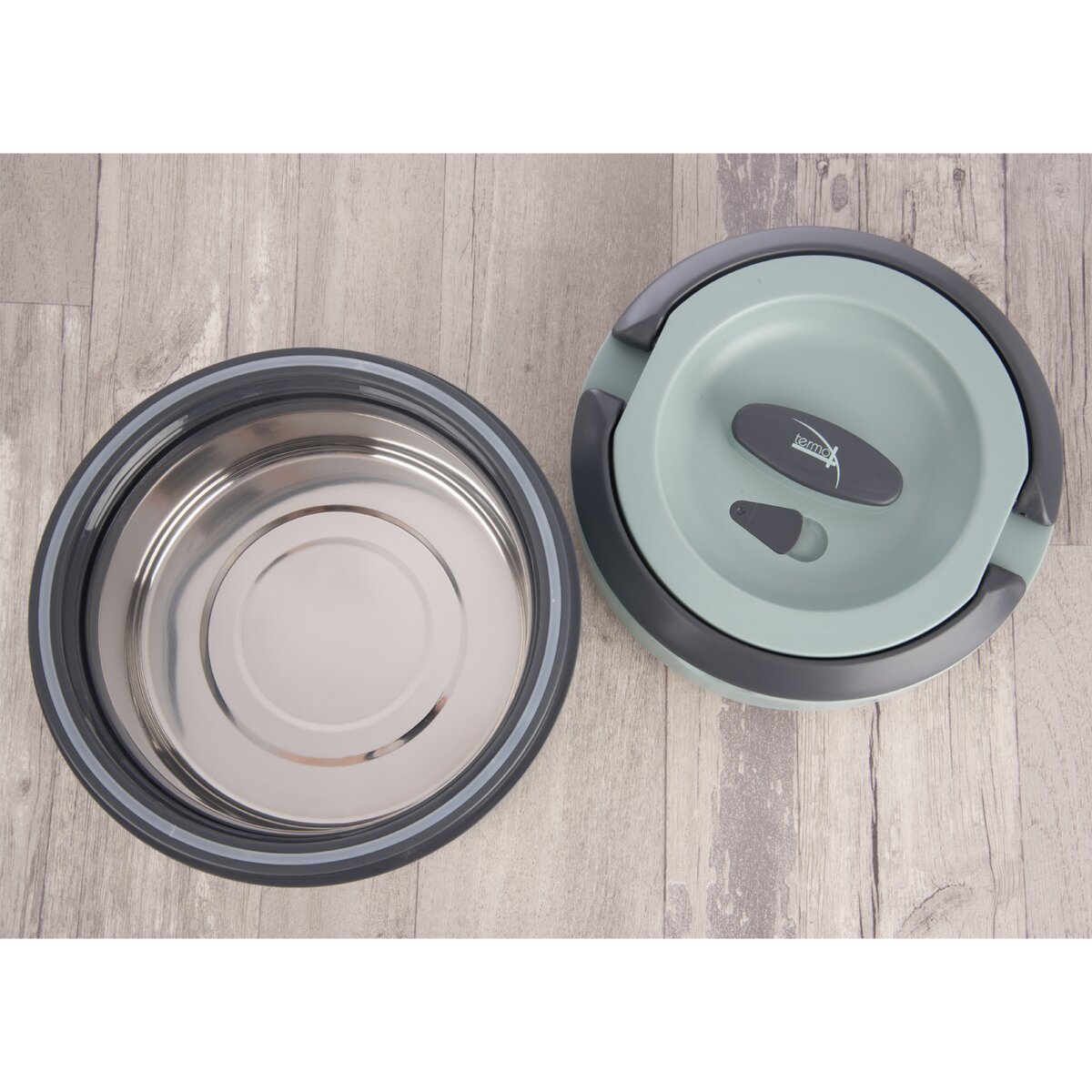 Kód produktu 128536Termomisa v plastovom obale s nerezovým vnútrom udrží vložený pokrm po dlhú dobu teplý alebo naopak chladný. Viečko je na závit a je opatrené silikónovým tesnením a sklápacími uchami pre jednoduché a pohodlné prenášanie. Pre ľahšie a bezpečnejšie otváranie je viečko opatrené ventilom, ktorý je potrebné pred otvorením termomisy otvoriť, tým sa uvoľní podtlak. Na boku termomisy je úchyt, ktorý zaistí pohodlné držanie pri uzatváraní a otváraní viečka. Využijete ju v domácnosti, zamestnaní aj na cestách, v lete aj v zime. Skvelé izolačné vlastnosti. Je ľahká, ľahko prenosná. Výborné využitie v horúcich letných dňoch na zmrzlinu. Dĺžka udržania teploty v nádobe závisí od okolitej teploty, resp. teplotnom rozdiele vonkajšej teploty a teploty vo vnútri nádoby. Pred vložením studeného pokrmu, napr. zmrzliny, vložte otvorenú nádobu cca na hodinu do chladničky, predĺžite tým chladiaci efekt. Pri vkladaní teplého jedla nalejte dovnútra horúcu vodu, ktorú zhruba po 1-2 minútach vylejte. Materiál: nerez, plast PP, polyuretán, silikón (tesnenie). Rozmery: pr. 22 cm, v. 14,5 cm, úžitkový objem 1,2 l, celkový objem 1,4 l. Nie je vhodná do umývačky ani MVR. Neobsahuje BPA.