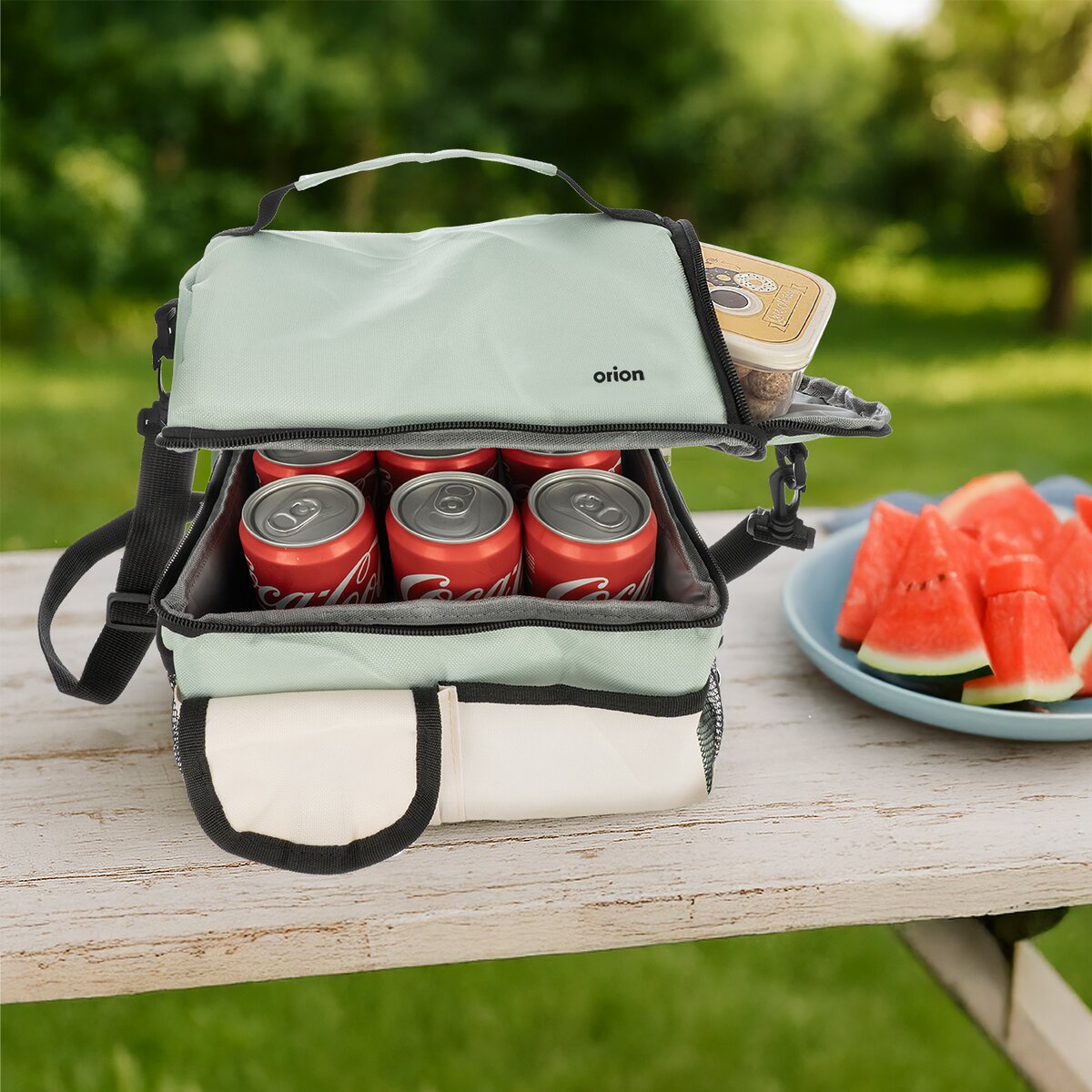 Kód produktu 731437Termobrašňa udrží vaše jedlo a nápoje dlhšie v požadovanej teplote – chladené nápoje, šaláty alebo dezerty zostanú dlhšie osviežujúce, teplé jedlo nevychladne tak rýchlo. Zaistí vám komfort stravovania na cestách. Funkčnosť termobrašny zaisťuje termoizolačná vložka. Výborne sa dovnútra zmestia fľaše, nápojové plechovky alebo plastové dózy. Uzatváranie je riešené zipsom. Taška má dve samostatné časti – dolná časť sa otvára po obvode, horná časť z boku. Praktické využitie dopĺňajú dve predné vrecká a bočné sieťované vrecká na drobnosti. Pre pohodlné prenášanie je vybavená pevným uchom aj nastaviteľným popruhom cez rameno. Údržba: v prípade zašpinenia odporúčame utrieť vlhkou handričkou. Materiál: polyester (tkaná textília 600D Oxford fabric + úchytky), polypropylén (sieťové vrecká), PEVA (strieborná fólia), penový polyetylén (výplň), polyester, plast PP a kov (jazdec). Rozmery: 23x15,5x24 cm. Približný celkový objem podľa rozmerov je 9 l.